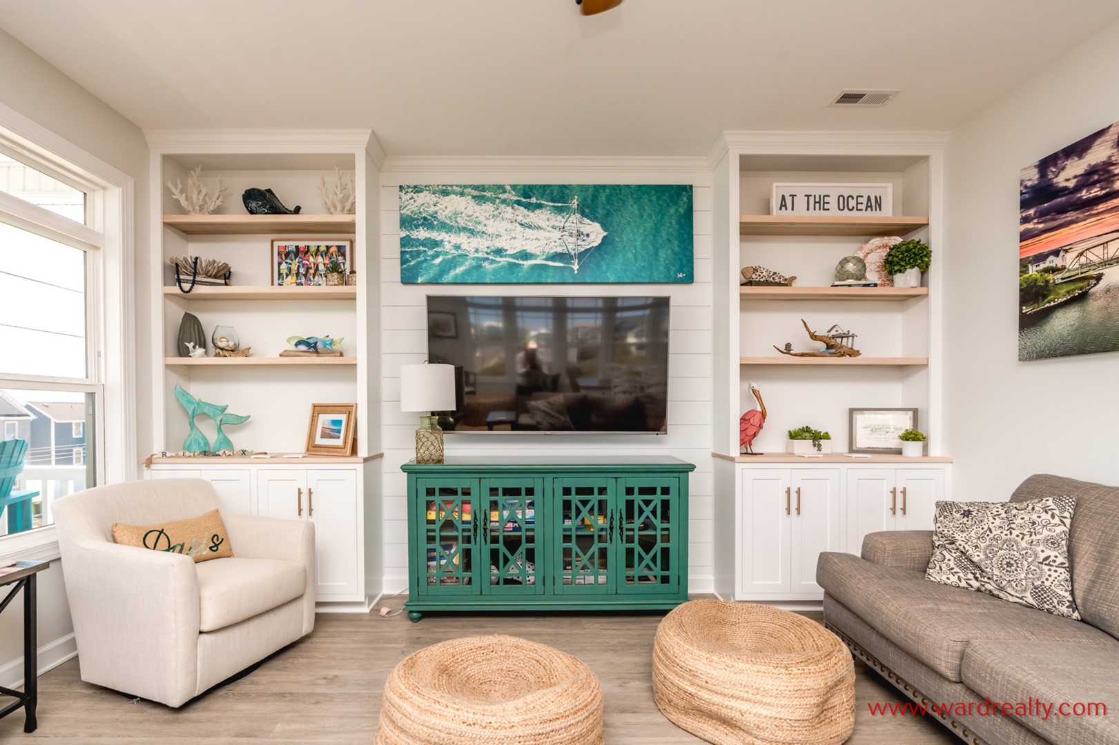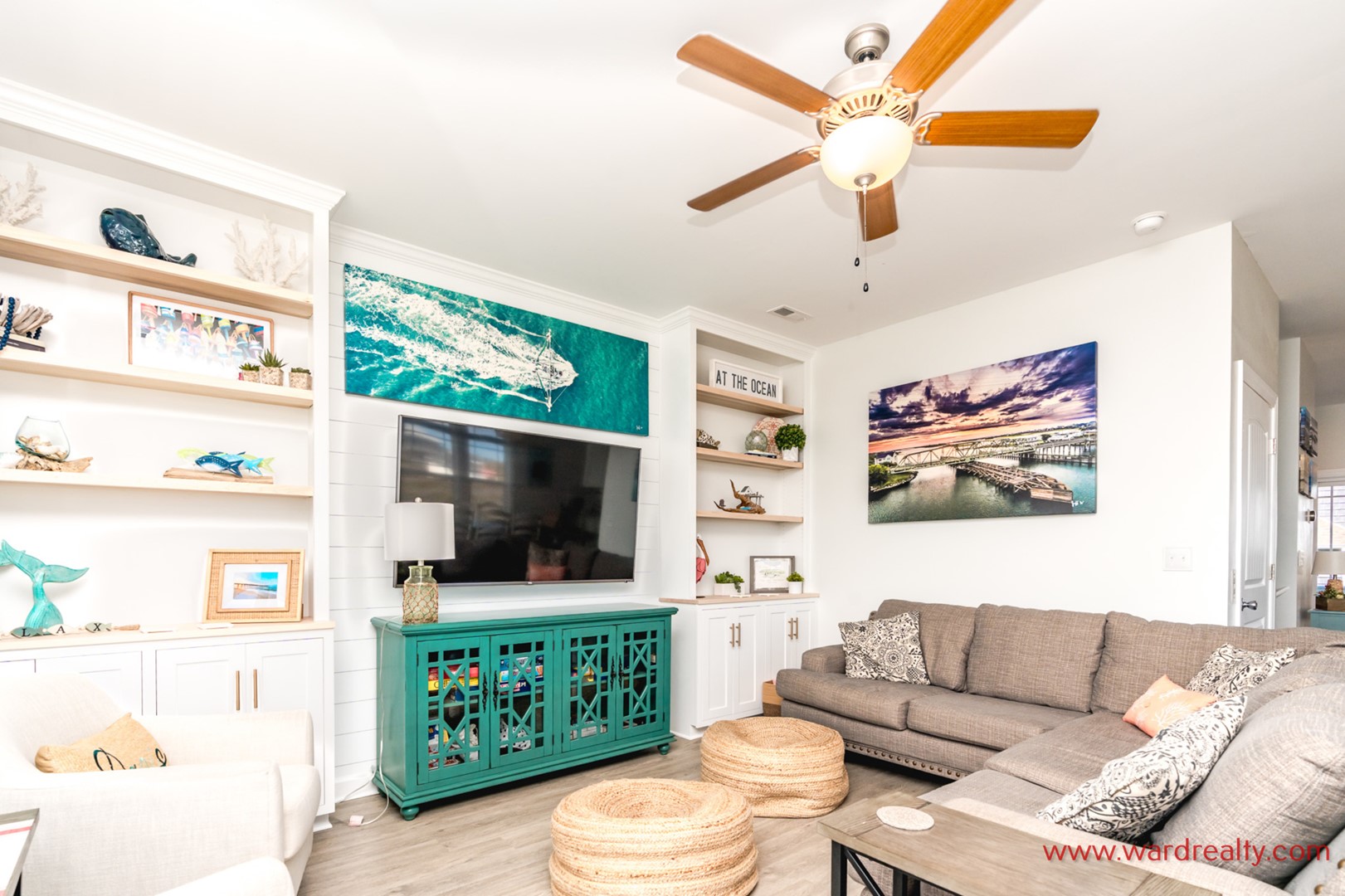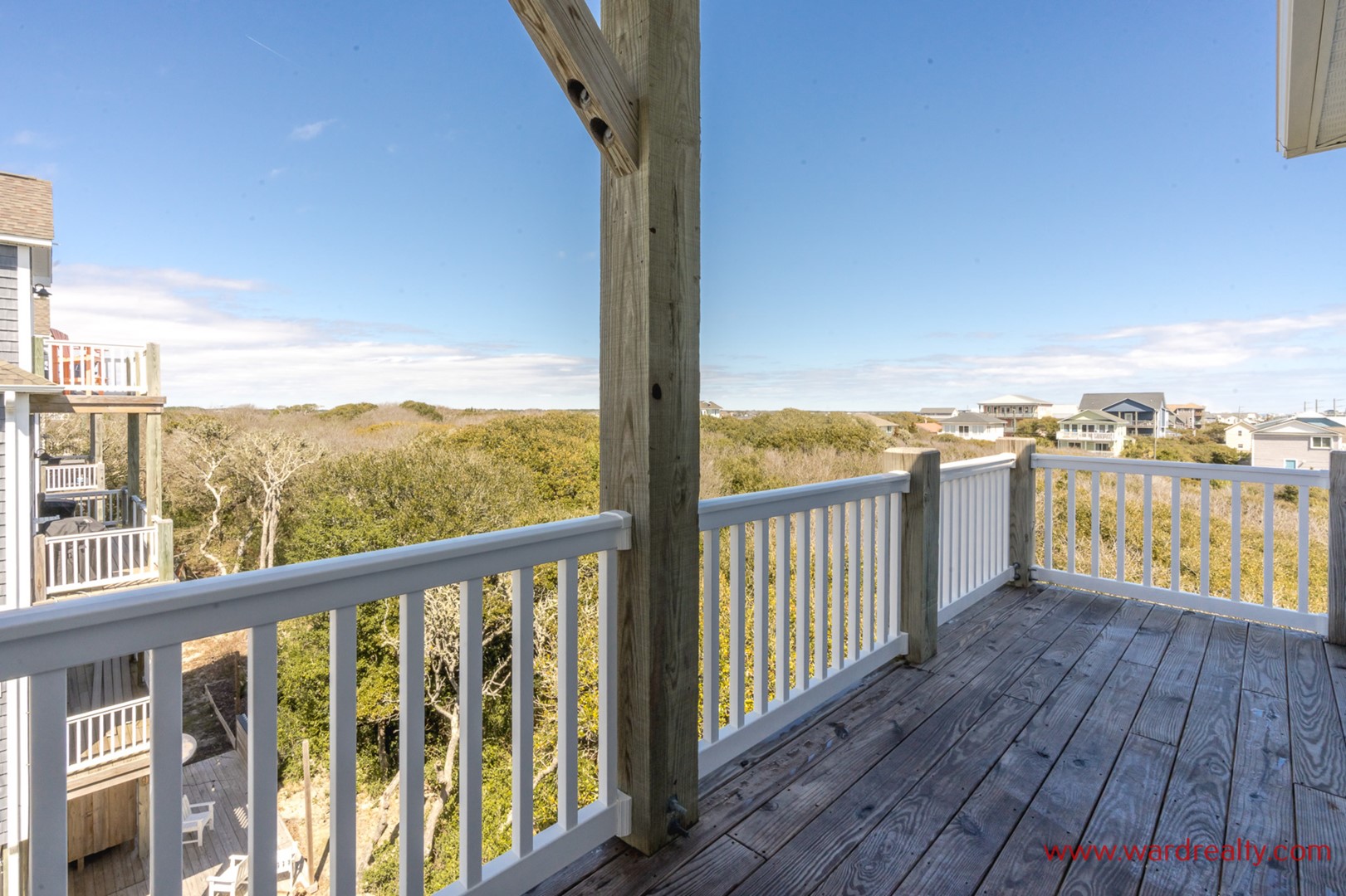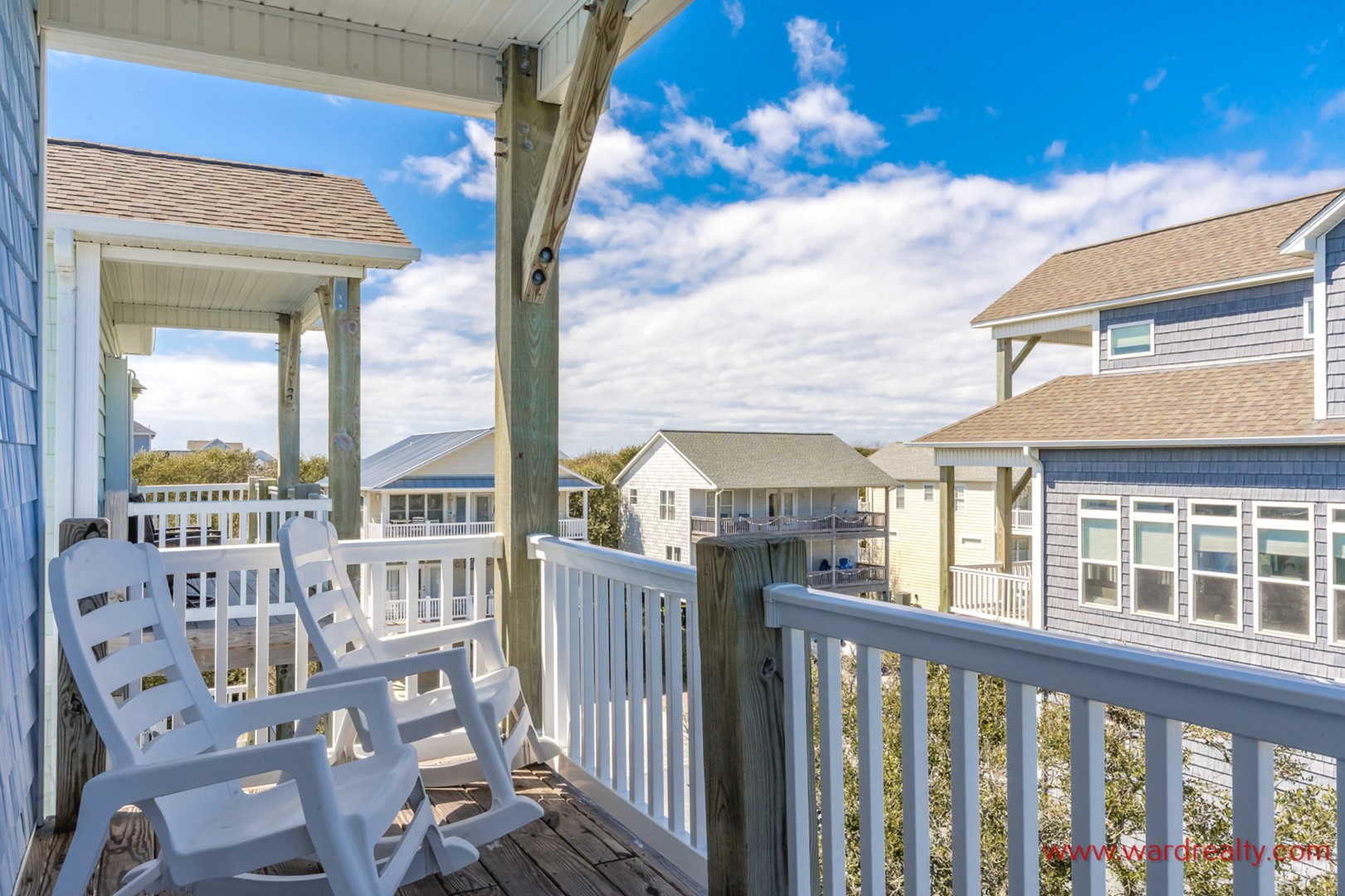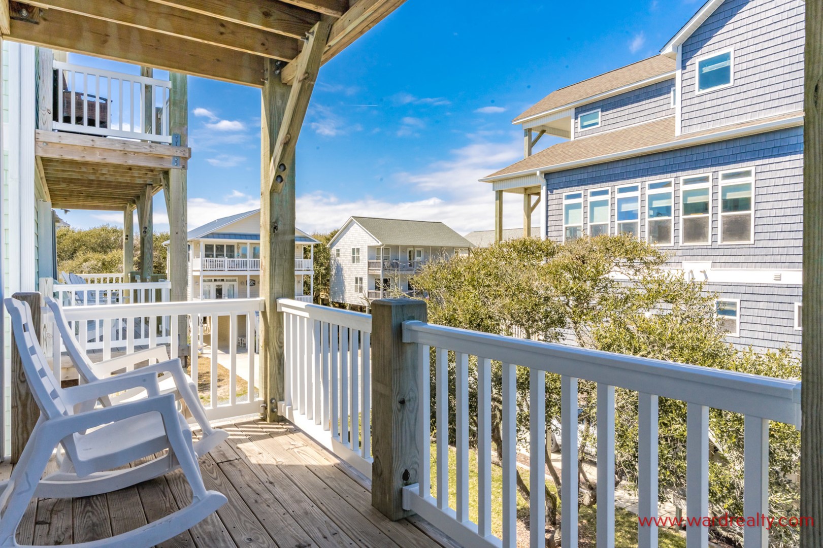 A Topsail Fairytale welcomes you to a beautiful coastal retreat designed for unforgettable family vacations. With sweeping ocean views from three front decks, and sound views from the top back deck, this spacious home offers the best of both worlds. When it’s time for a swim or a sandy stroll, the beach access is across the street.