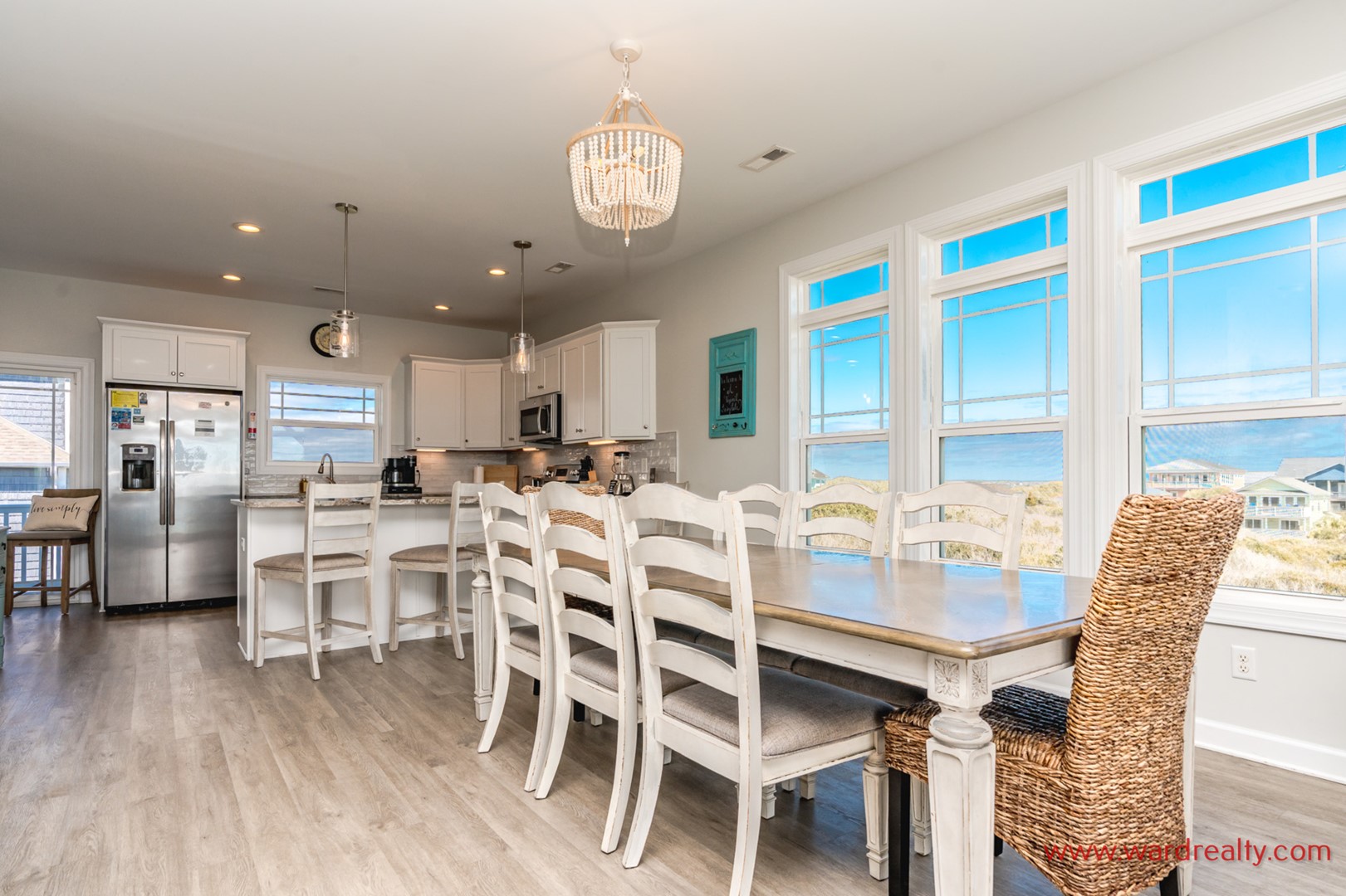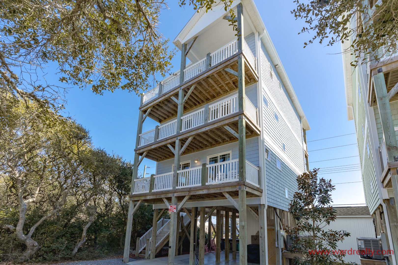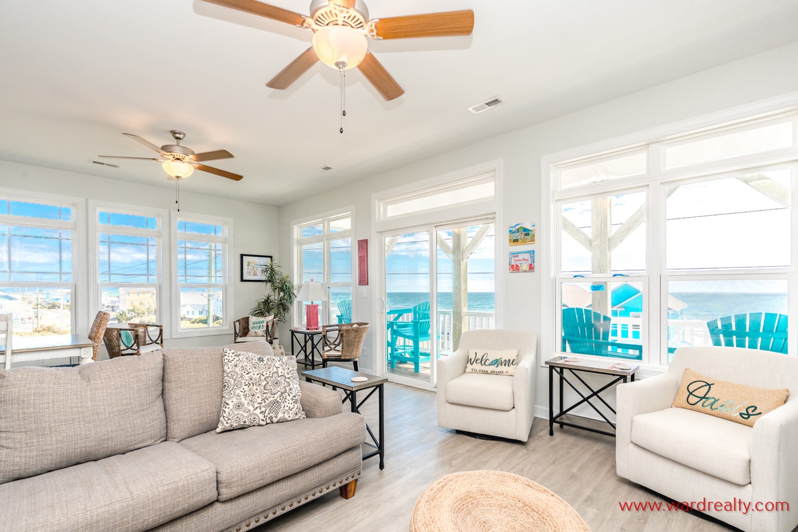 The reverse floor plan makes the main living level the perfect gathering place, complete with ocean views where you can relax to the rhythm of the waves. Bright living areas, a fully equipped kitchen, and dining space where everyone can come together to share meals, laughter, and those magical vacation moments that feel straight out of a fairytale. An interior elevator provides easy access to all four floors.