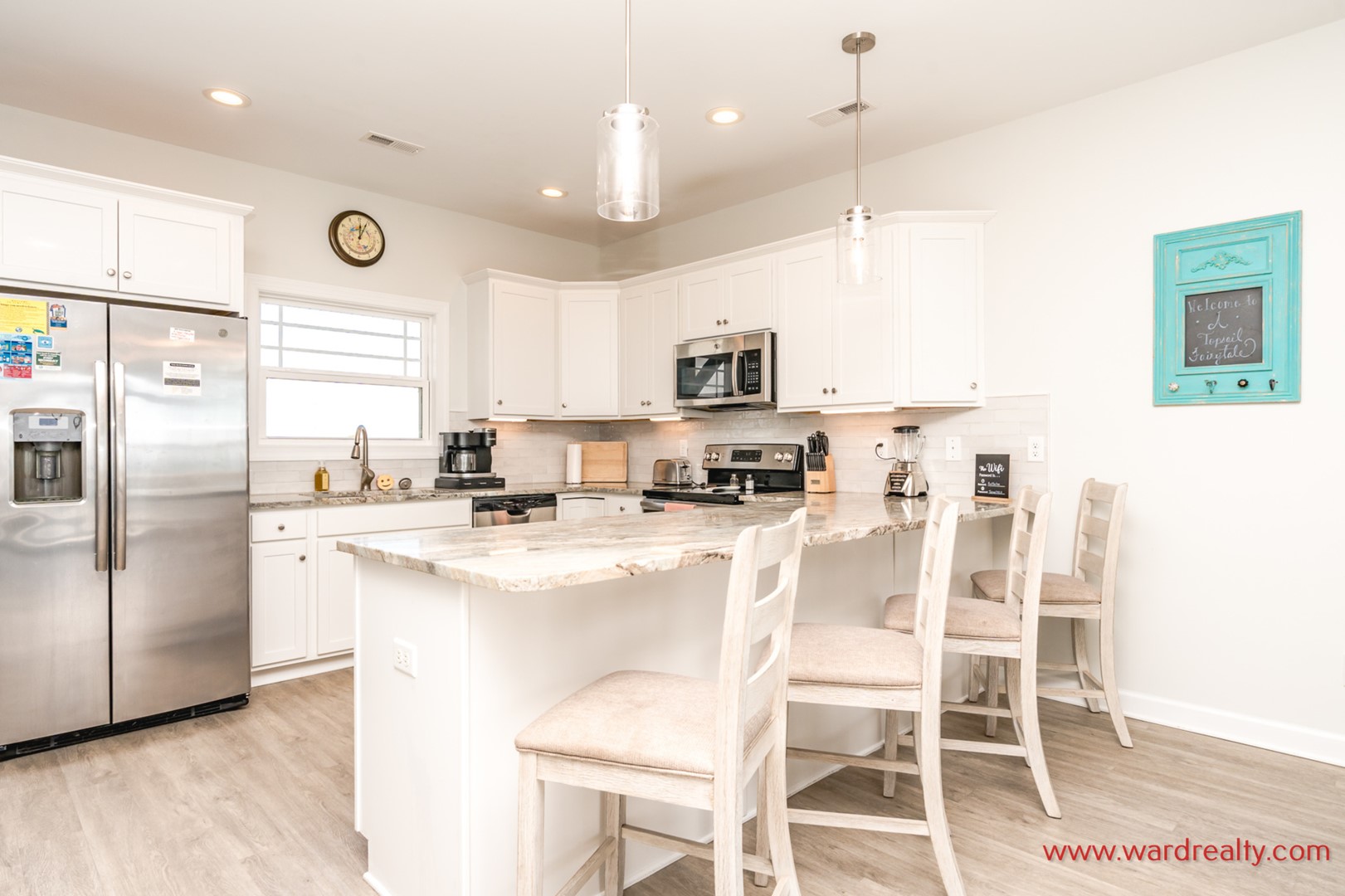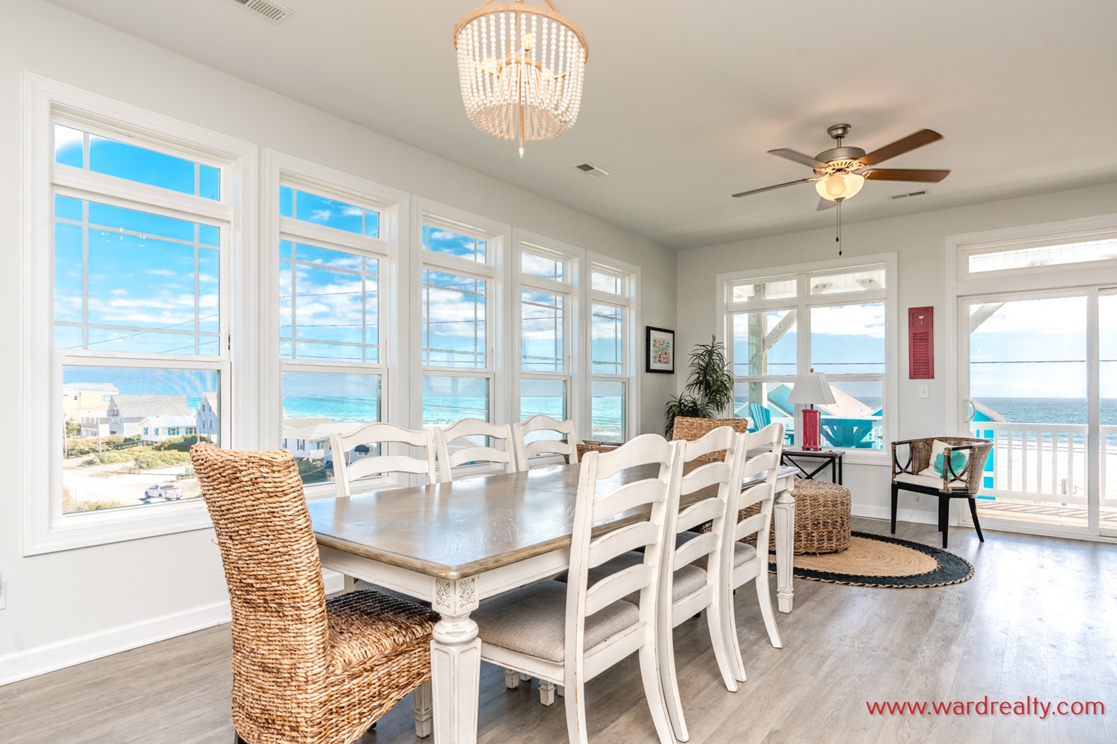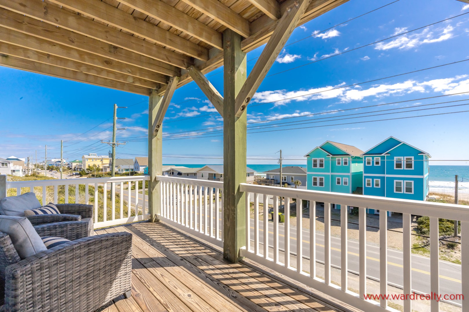 The reverse floor plan makes the main living level the perfect gathering place, complete with ocean views where you can relax to the rhythm of the waves. Bright living areas, a fully equipped kitchen, and dining space where everyone can come together to share meals, laughter, and those magical vacation moments that feel straight out of a fairytale. An interior elevator provides easy access to all four floors.