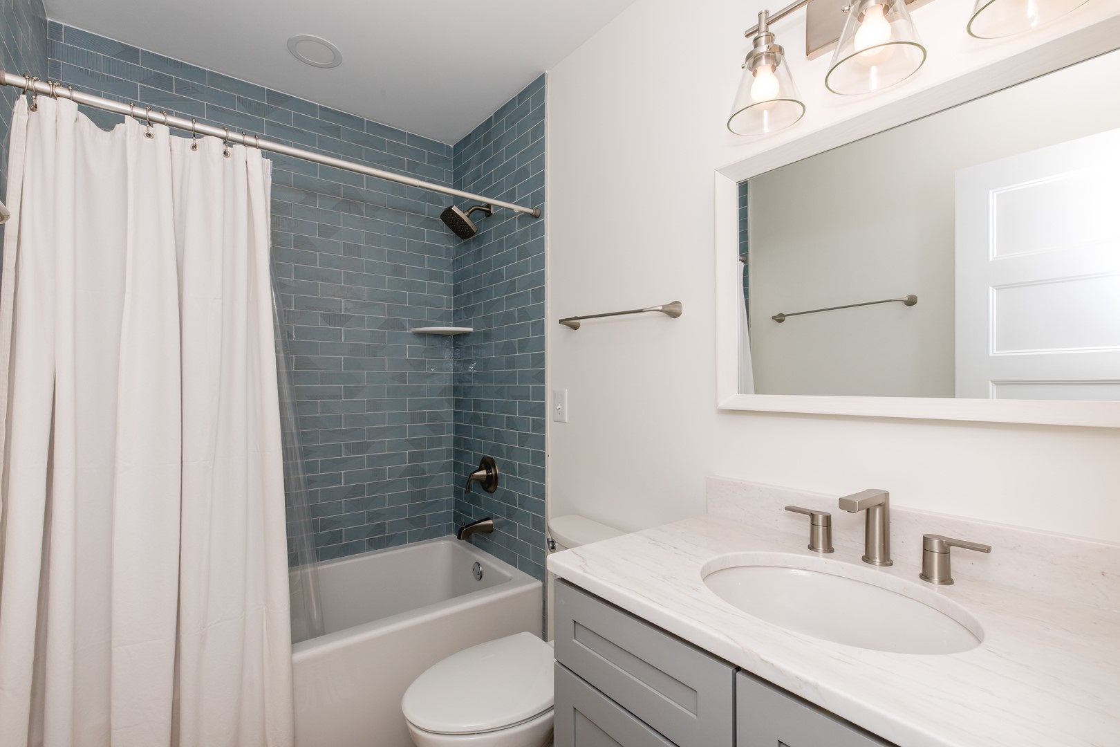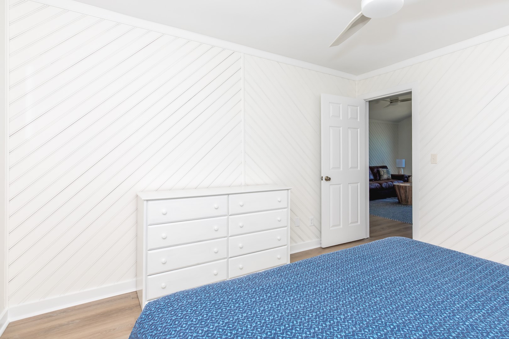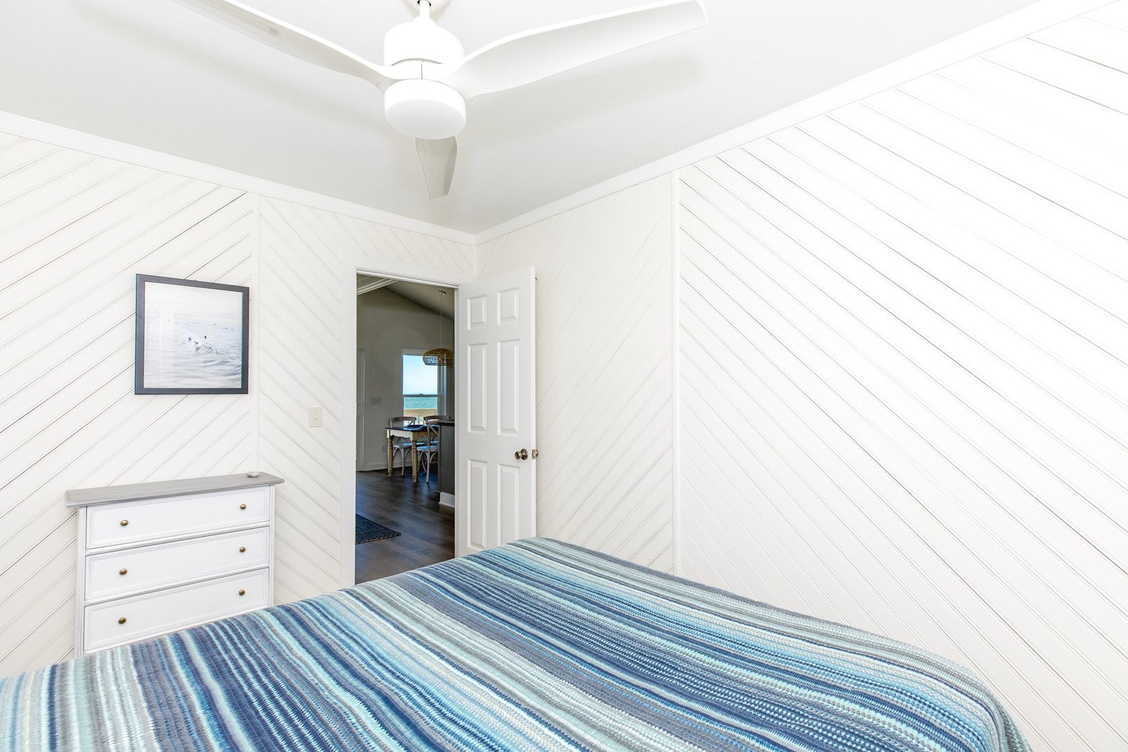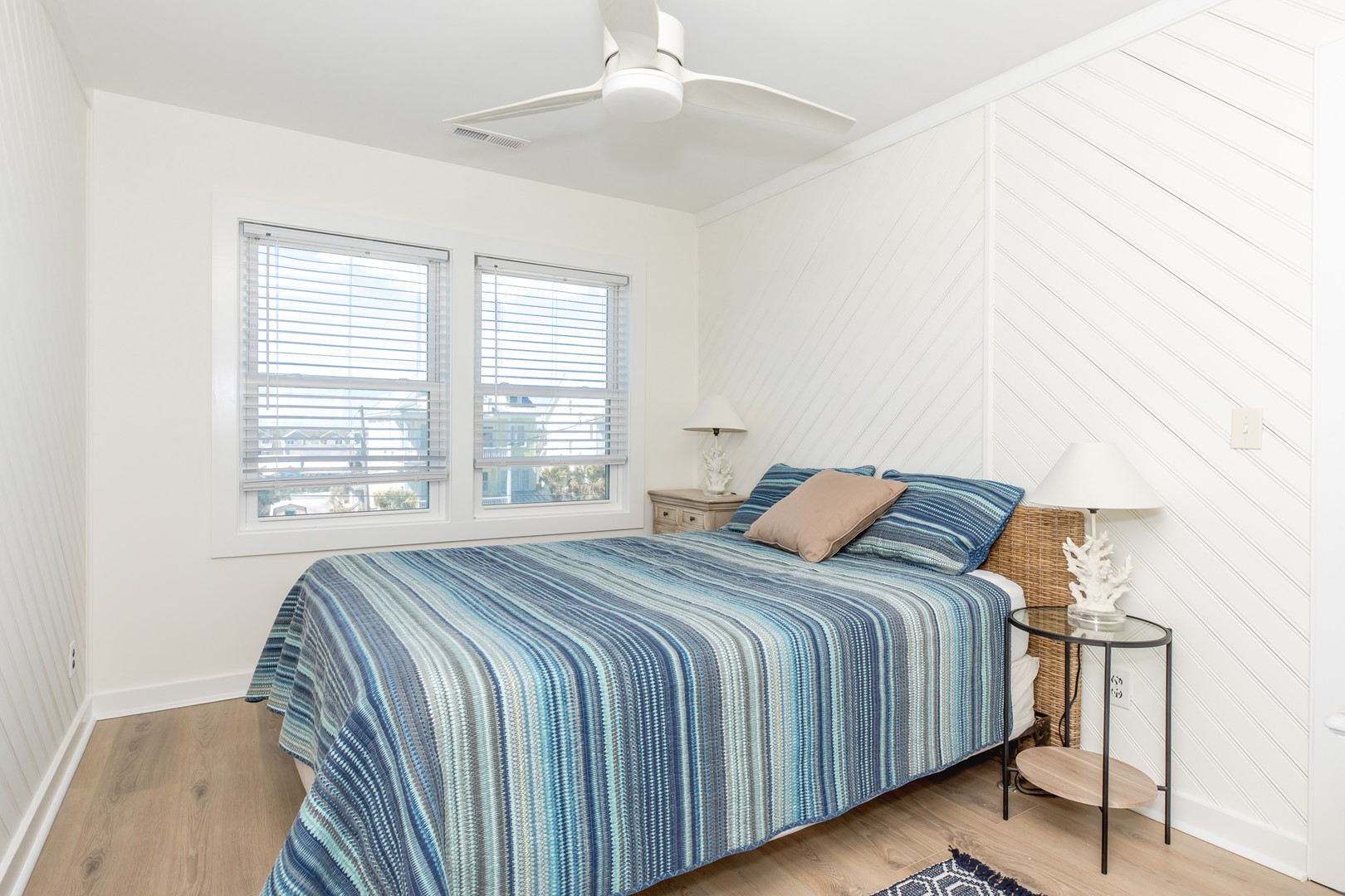 - South Street-Side Bedroom: Queen Bed; shares adjacent full bathroom with tub/shower