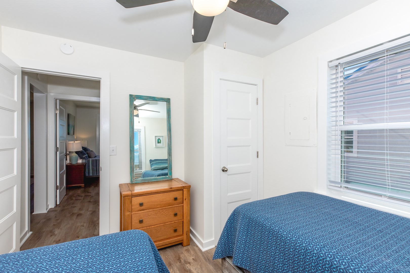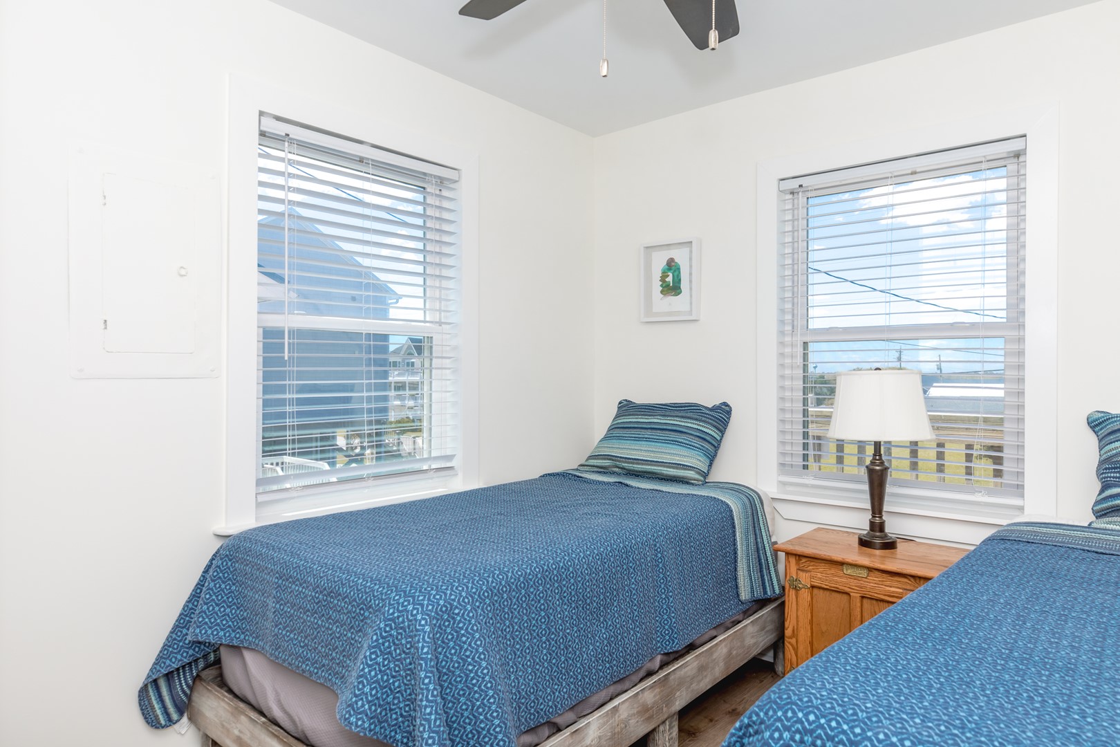- South Street-Side Bedroom: 2 Twin Beds; shares adjacent full bathroom with tub/shower