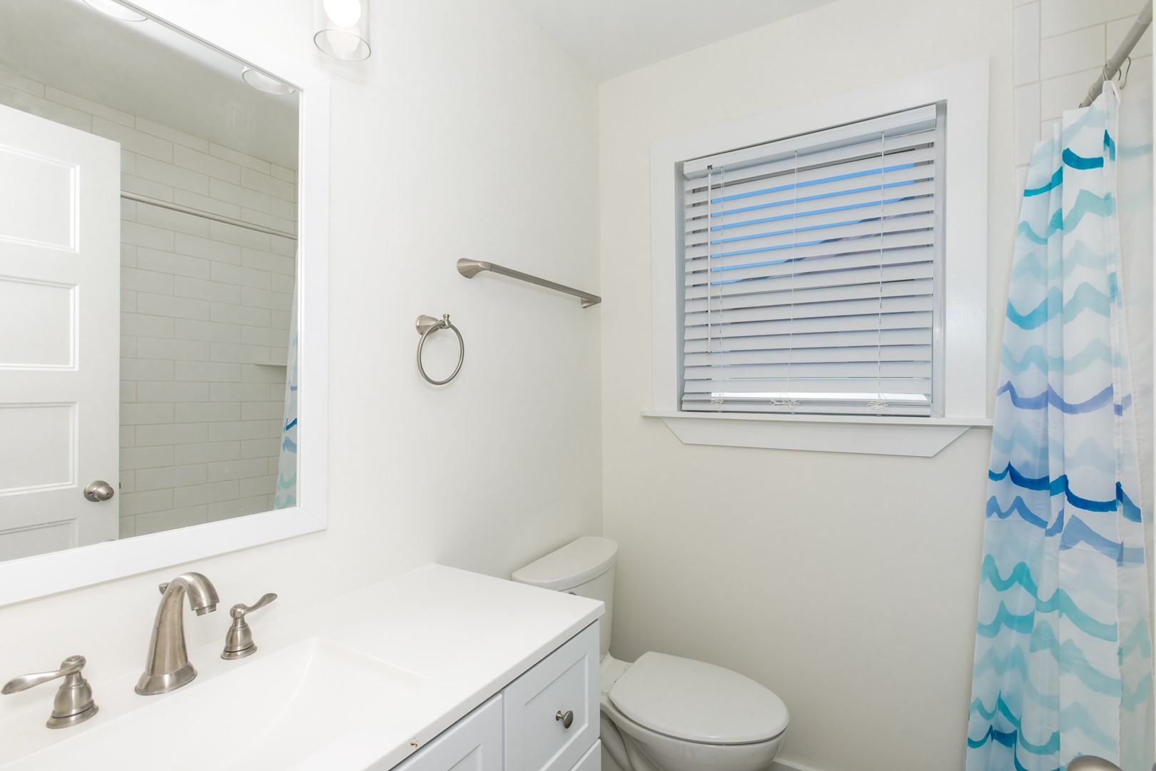 - North Street-Side Bedroom: Queen Bed; shares adjacent full bathroom with tub/shower