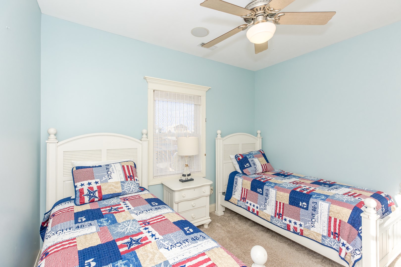 - Street-Side North Bedroom: Double & Twin Beds; shares hall bath with tub/shower