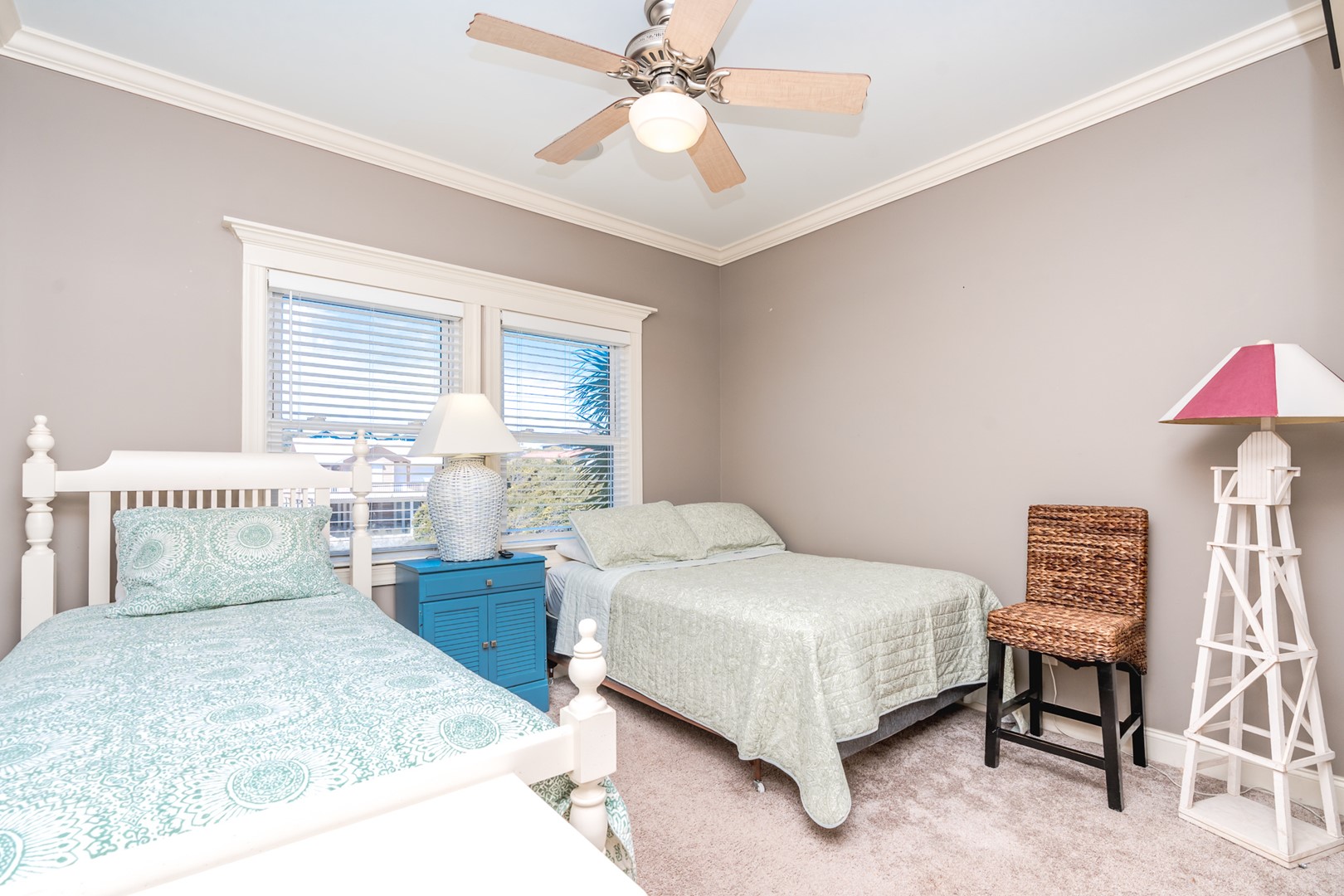 - South Street-Side Bedroom: Queen and Twin Beds; private entrance to shared bathroom with tub/shower