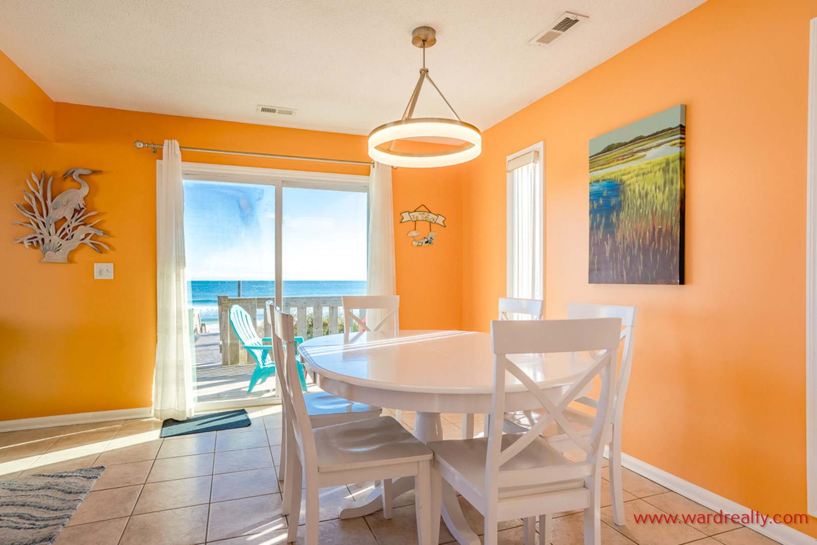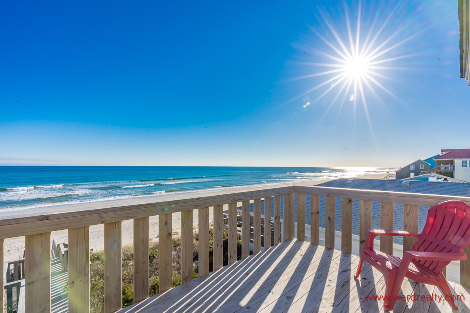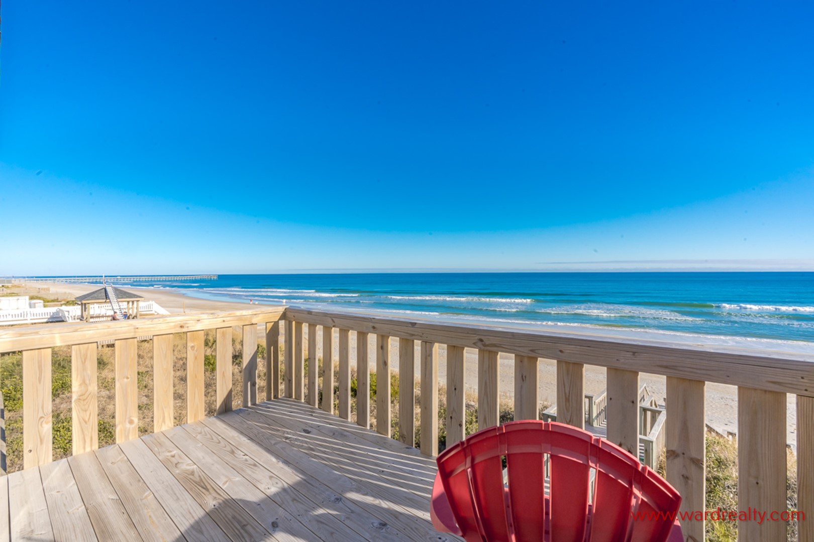 Rest and relaxation are plentiful when you vacation in this nicely decorated beach home located on the oceanfront in Surf City. Enjoy the wonderful views of the Atlantic Ocean from one of the many sun decks.