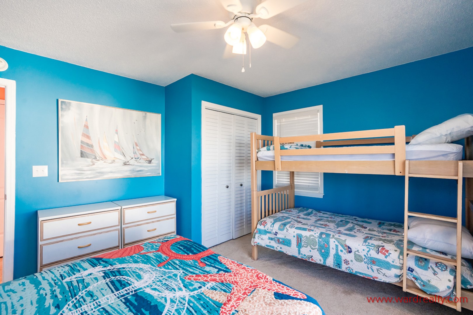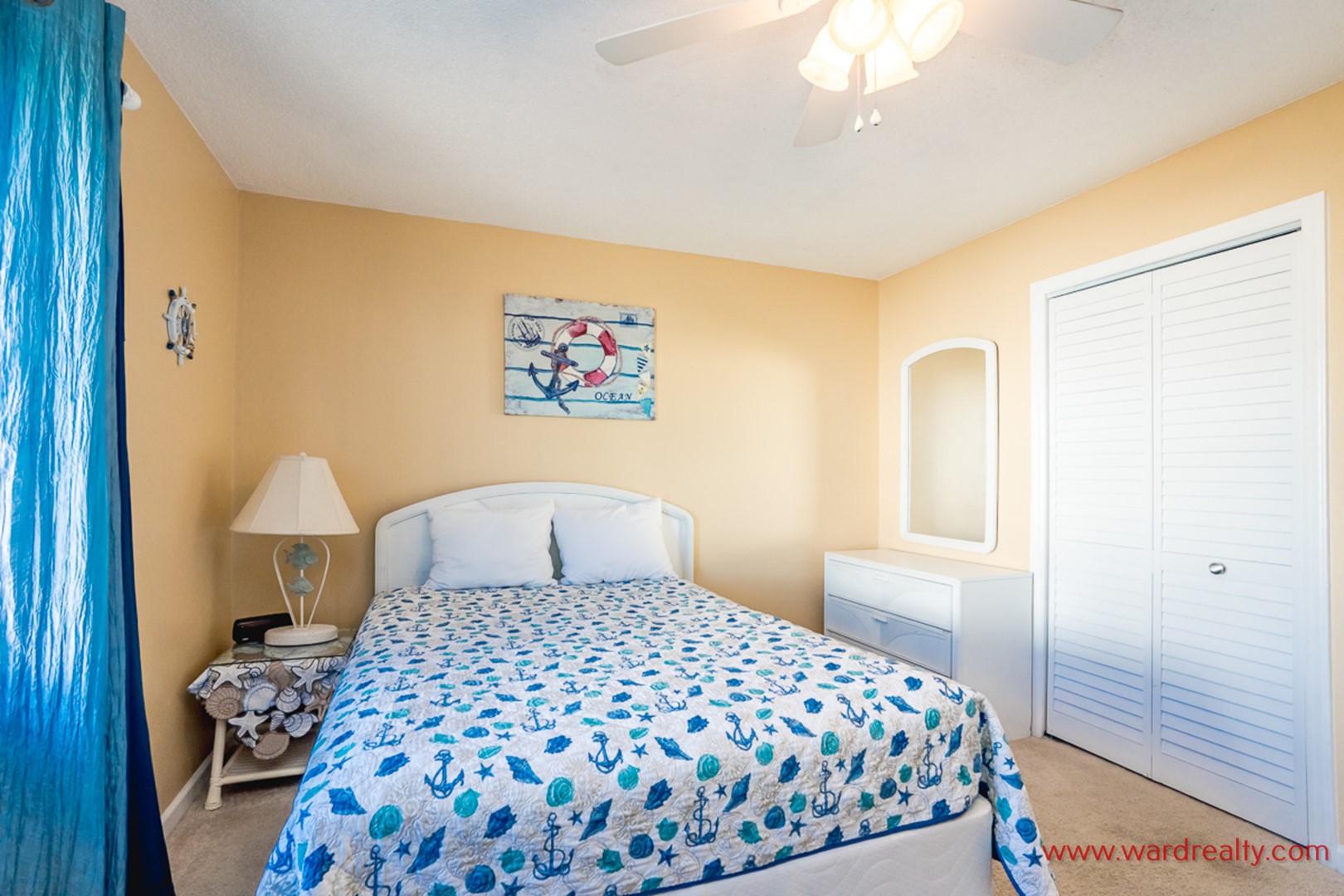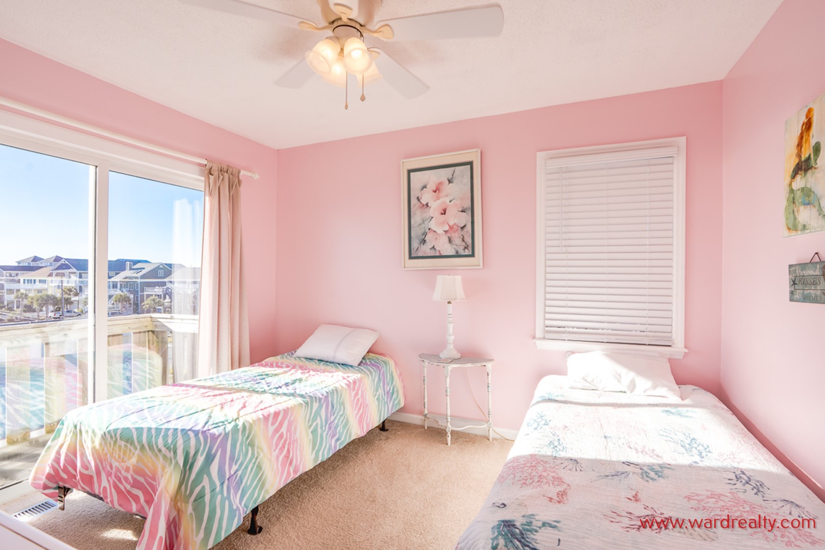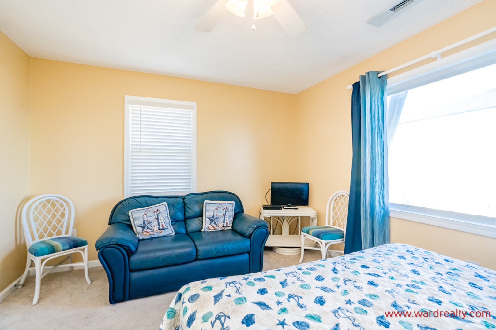 - Top Floor Oceanfront Bedroom: King Bed; access to private sun deck; shares hall bathroom with tub/shower