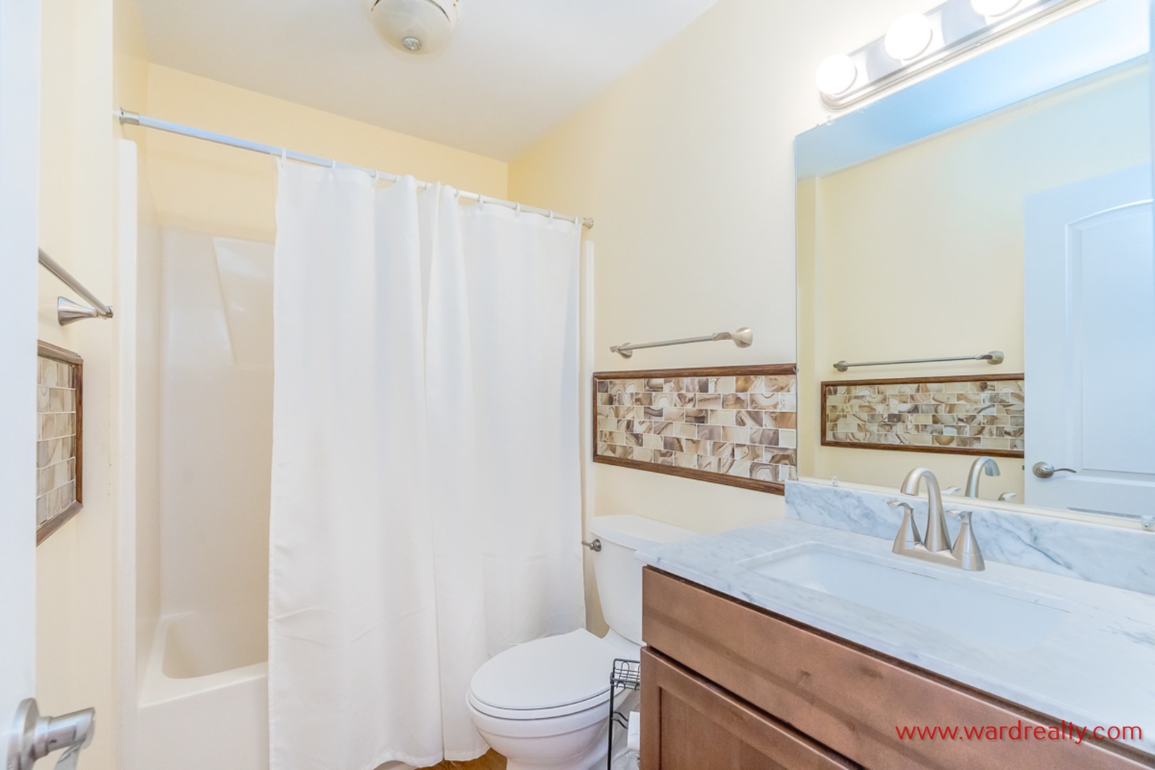 - 1st Floor Street-Side Bedroom: Queen Bed; shares hall bathroom with shower