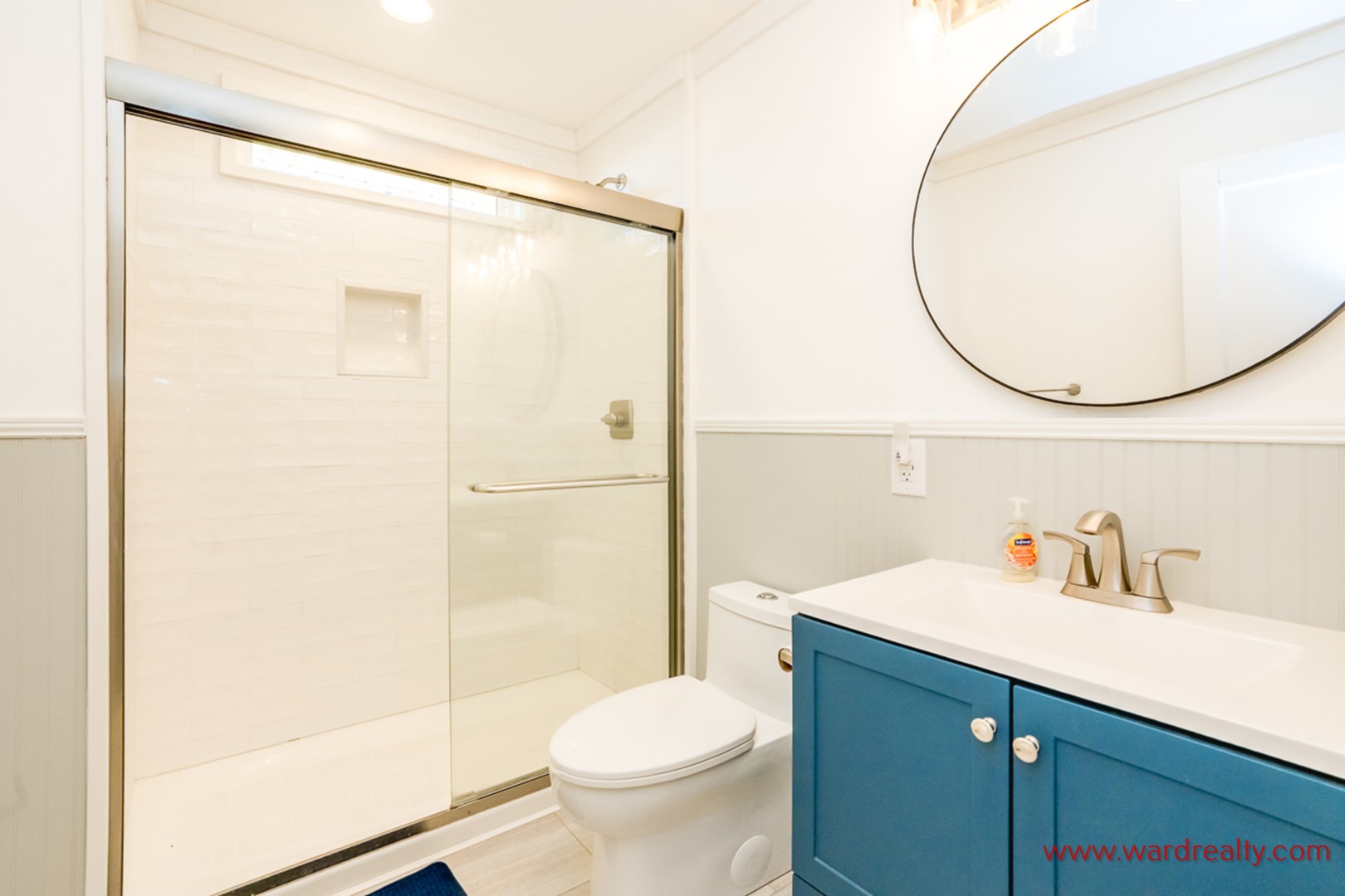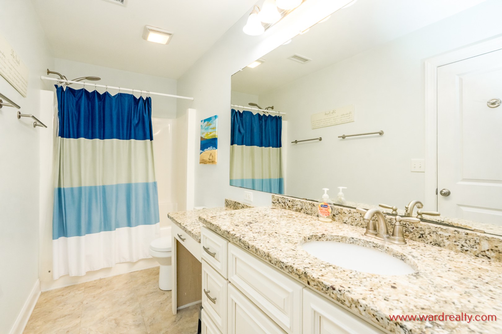 - Streetside South Bedroom: Twin over Double Bunk Bed; shares hall bathroom with tub/shower