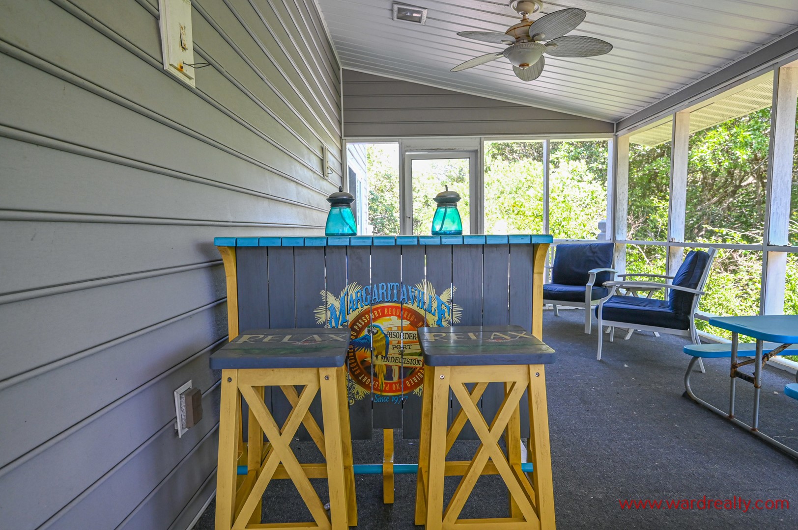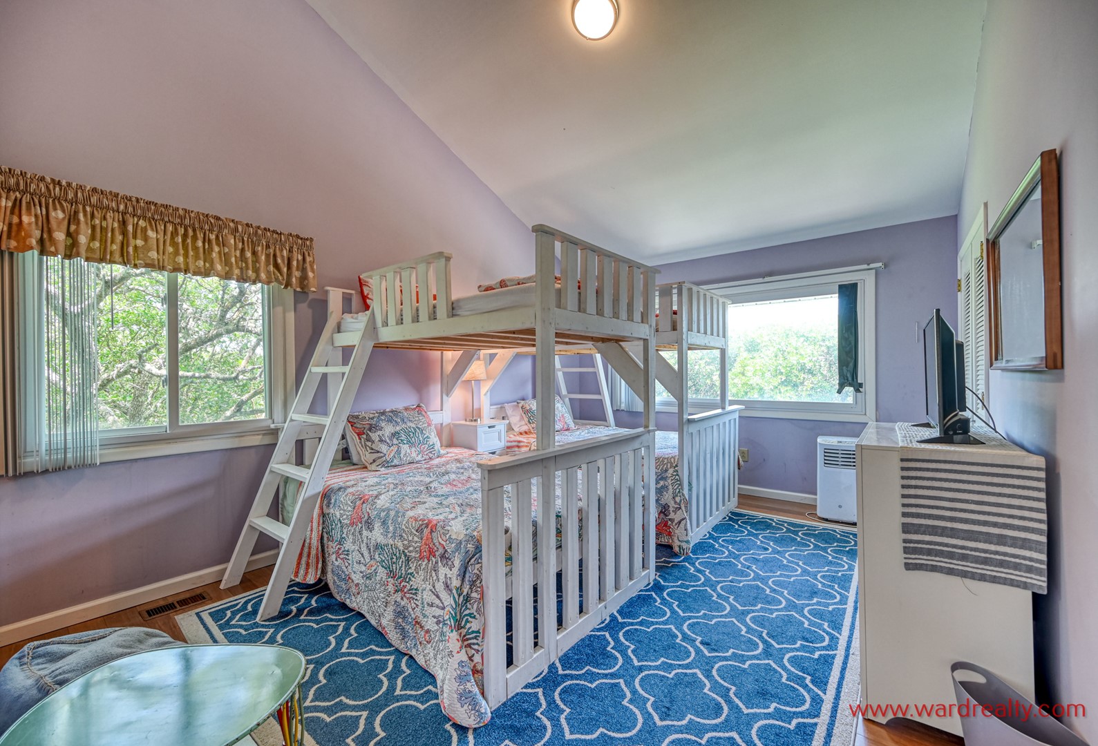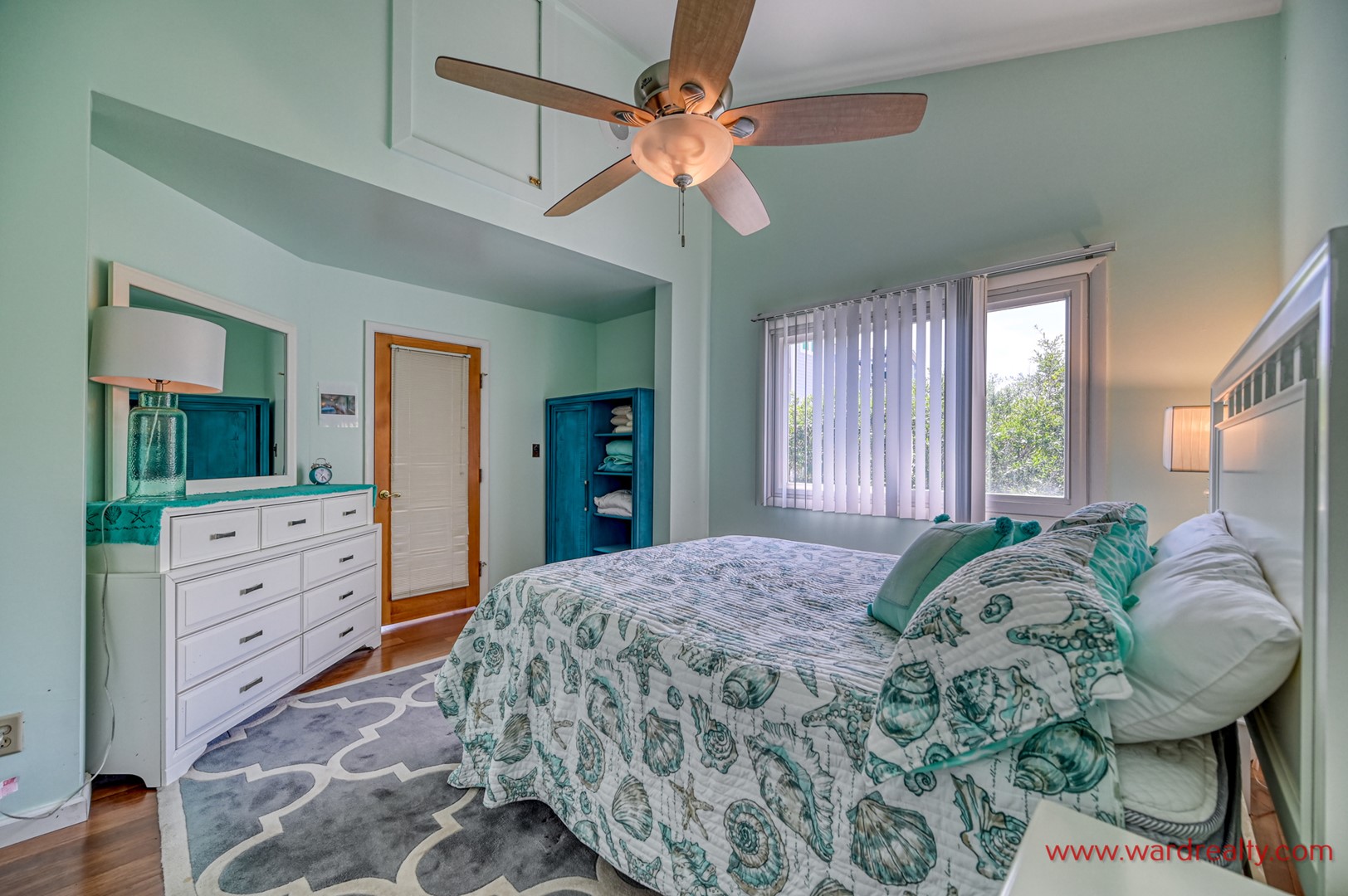 The first floor provides the main common areas for all to enjoy. The comfy living room, kitchen and dining area are located here. The kitchen is fully stocked and waiting for the family chef to whip up todays fresh catch. With eat-in seating or a spacious dining table for the whole family to enjoy a meal together. In the back, an amazing screened-in porch (with tiki bar) awaits with an adjacent sun deck and covered deck to be enjoyed night and day. There is also a quaint front deck that overlooks the salted oaks of Channelbend.