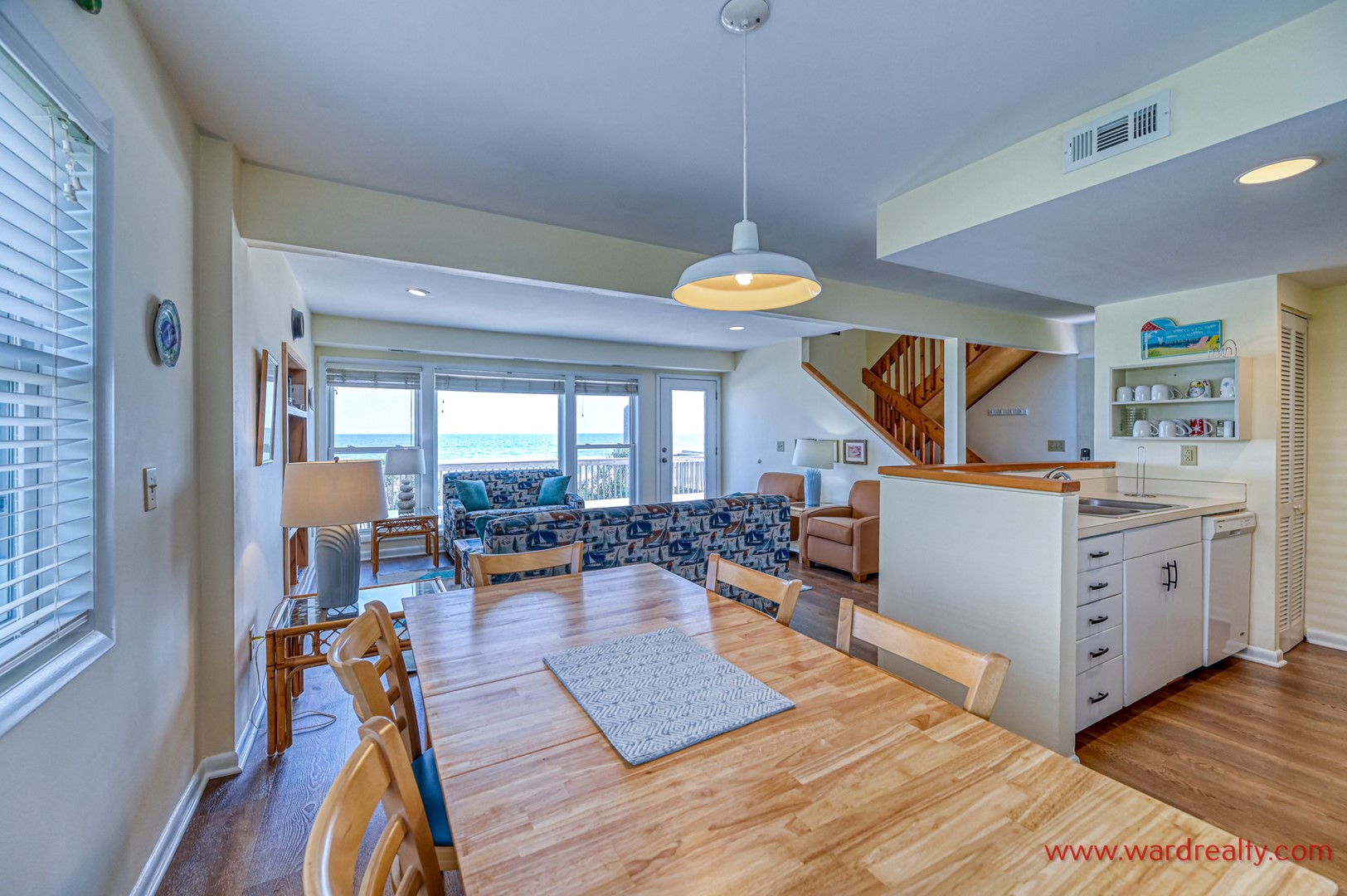 This tastefully decorated and comfortably furnished, 3 bedroom, 2.5 bath open layout home is just the place for you and your family, including your favorite furry friend!. Enter the home from the side and step into the living room. On the other side of the living room is the dining area and kitchen. Prepare your fresh seafood meals here! Also on this floor is a half bath with a washer and dryer.