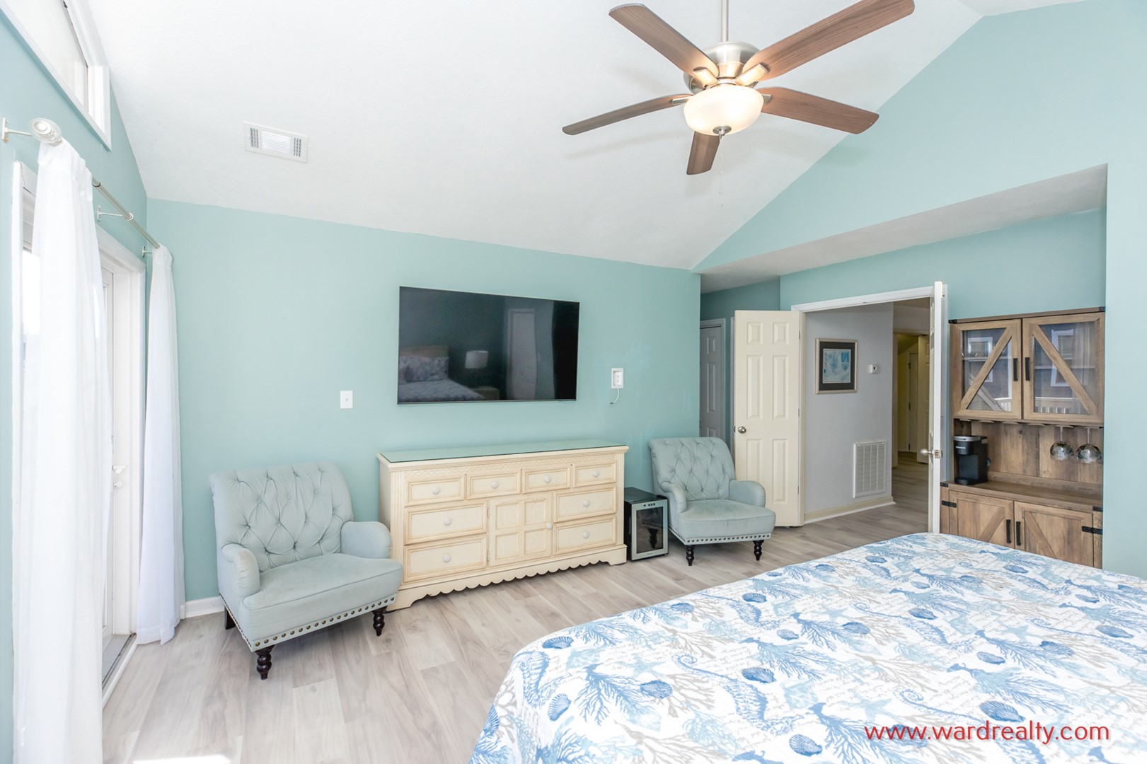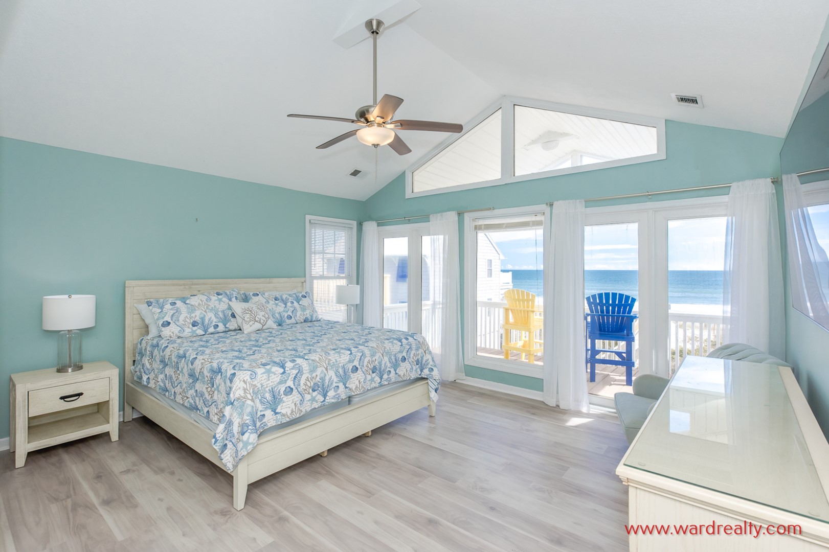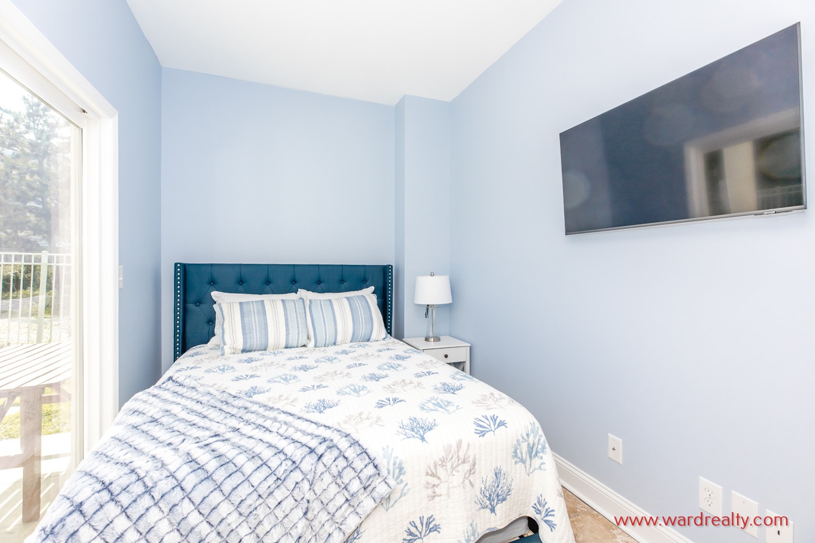 - South Oceanside Bedroom - Pool View: Queen Bed; TV; access to covered patio