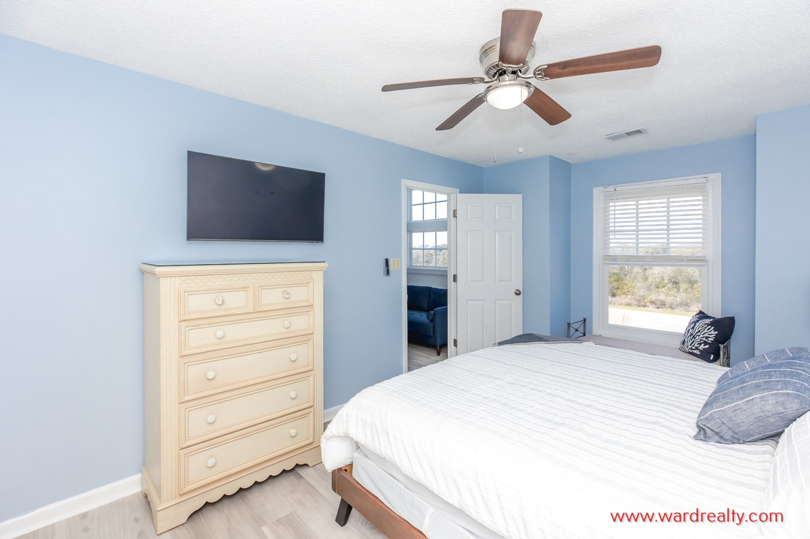 - Middle North Bedroom: Queen Bed; TV