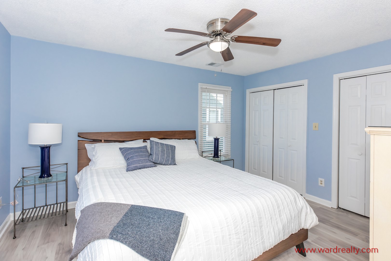 - Streetside North Bedroom: King Bed; TV; shares hall bathroom with tub/shower