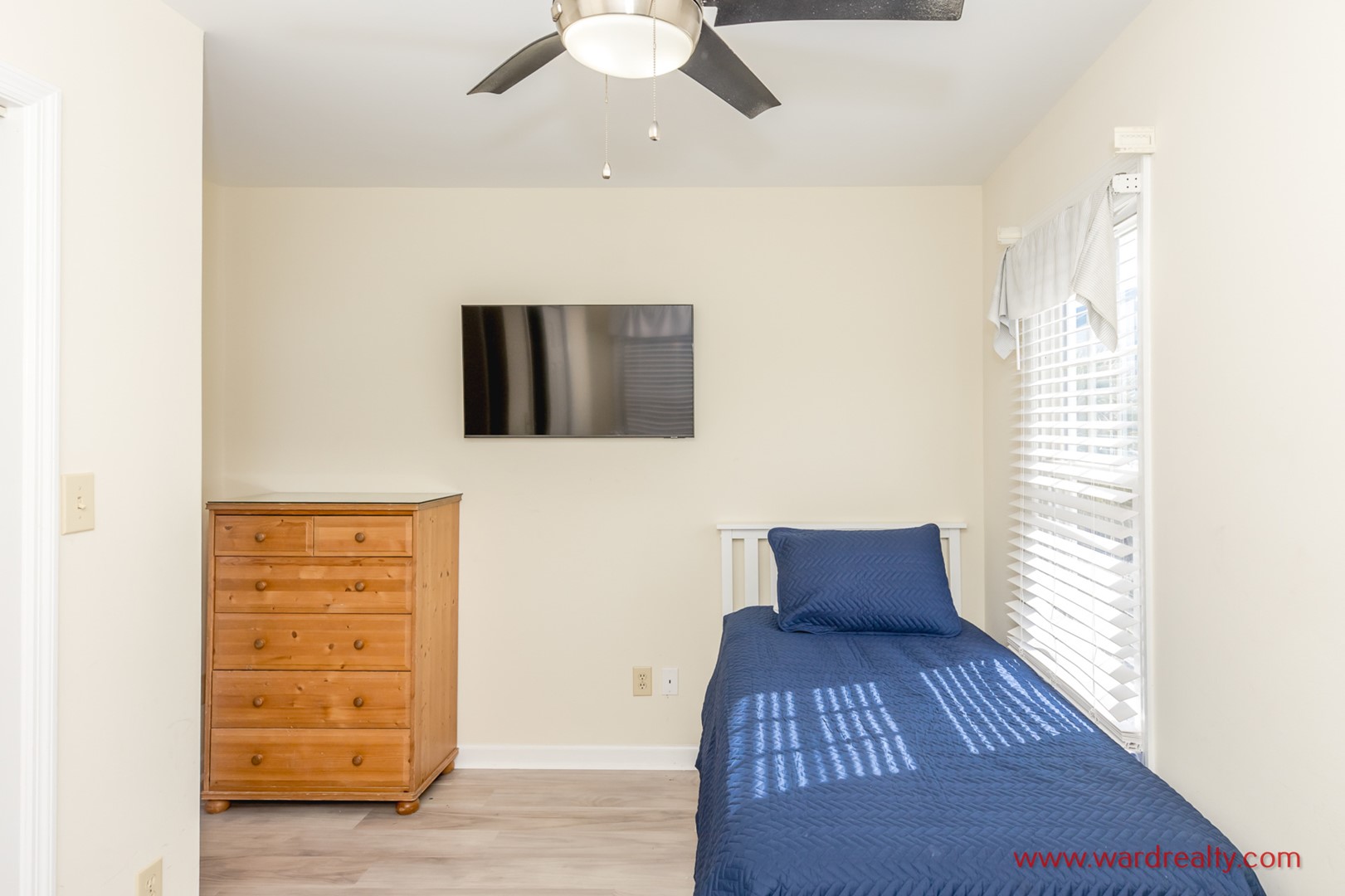 - Streetside South Bedroom: 2 Twin Beds; TV; shares hall bathroom with tub/shower