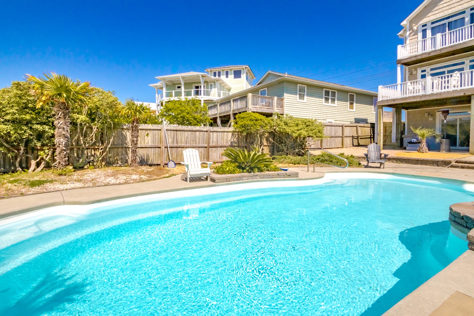 If you are looking for a rare sea dragon, you won't have any luck finding one off the coast of North Carolina. However, if you move your search on land you will be in luck! Sea Dragon is a gorgeous 6 bedroom home with every want and need imaginable! Private pool and hot tub in the backyard, plenty of room with three floors of livable space, bonus hangout room on the ground floor, easy convenient beach access, sun decks for sunset views and more await you, your family and even your dog. Enjoy the unobstructed ocean views from the covered porches at this second row home any time of day and take advantage of all this home has to offer. You may not be able to pinpoint your favorite thing about Sea Dragon, but we know you will never want to leave! The community beach access is located accross the street, approximately 75 feet south of the house, at the intersection of S Shore & Crutchfield.