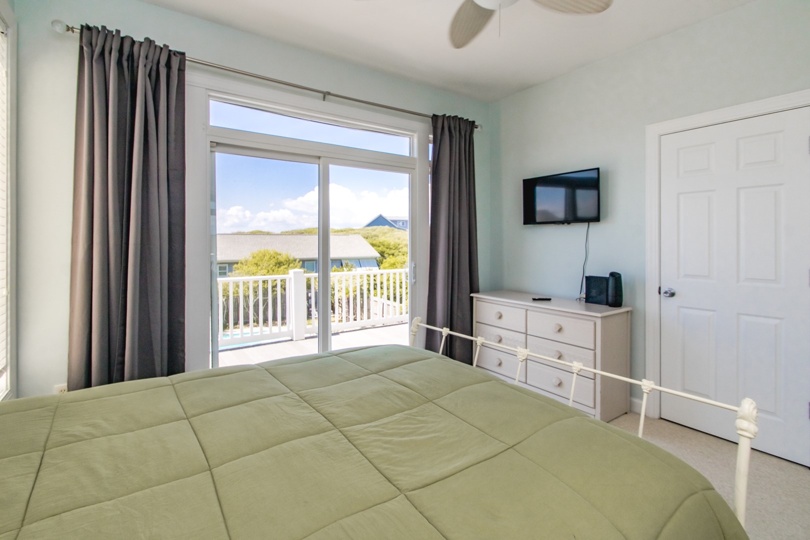 - North Oceanside Bedroom: King Bed; TV; access to covered porch; private bathroom with shower