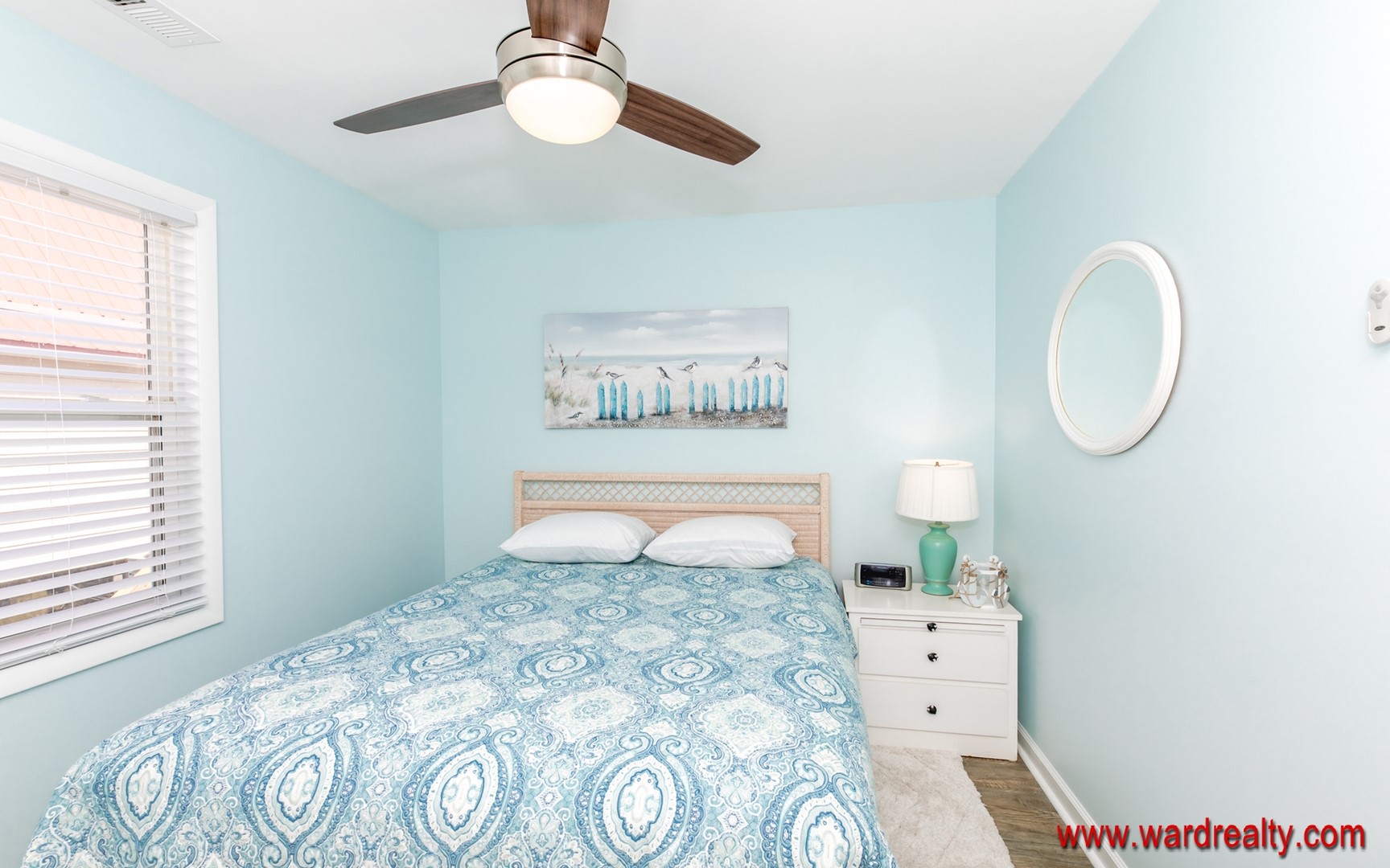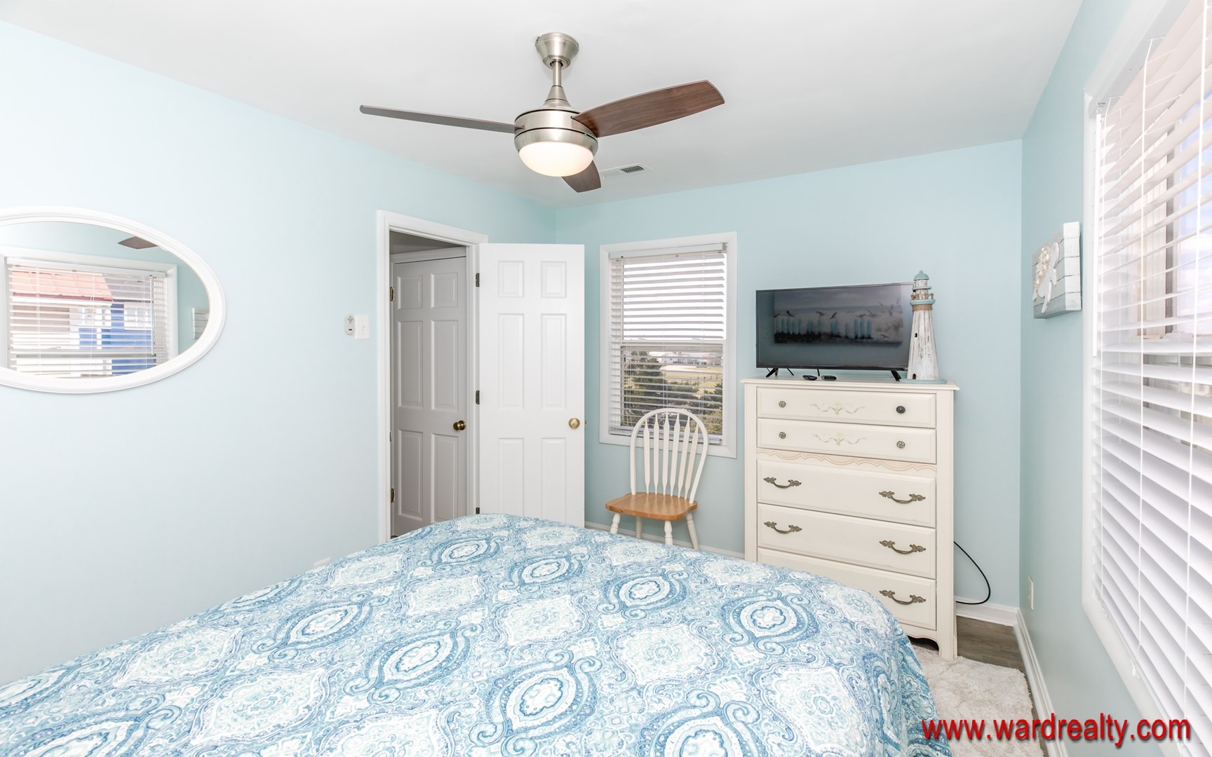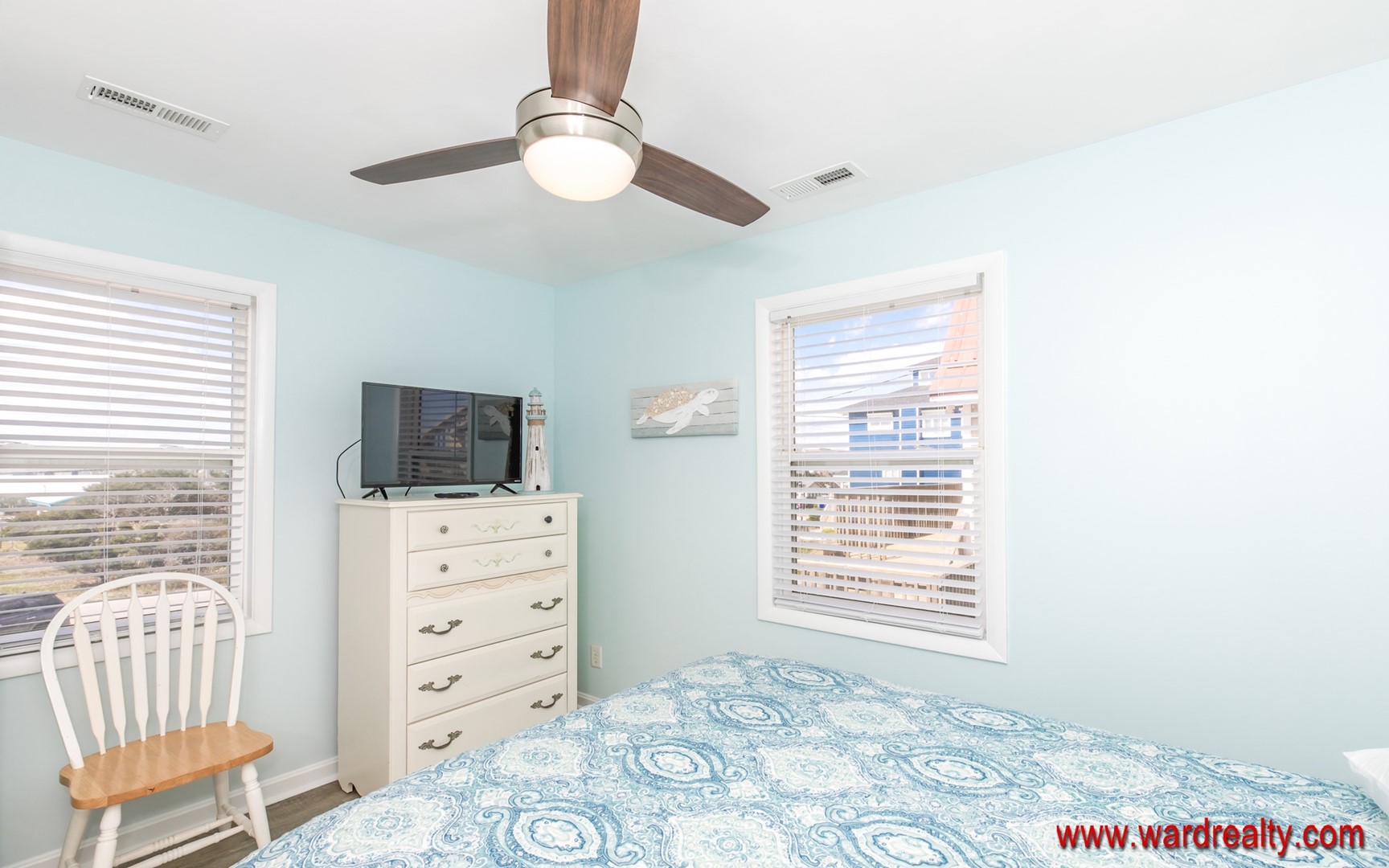 Fall asleep to the sounds of the surf in the comfortably furnished bedroom with a queen size bed.