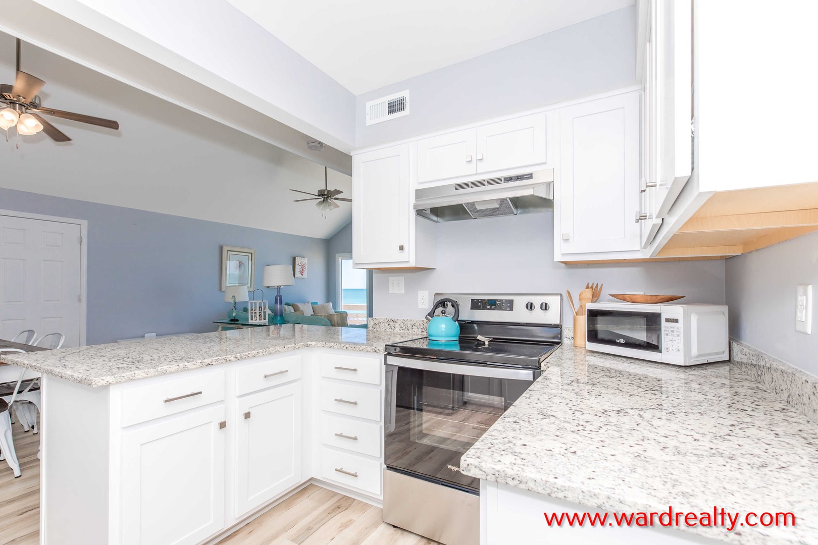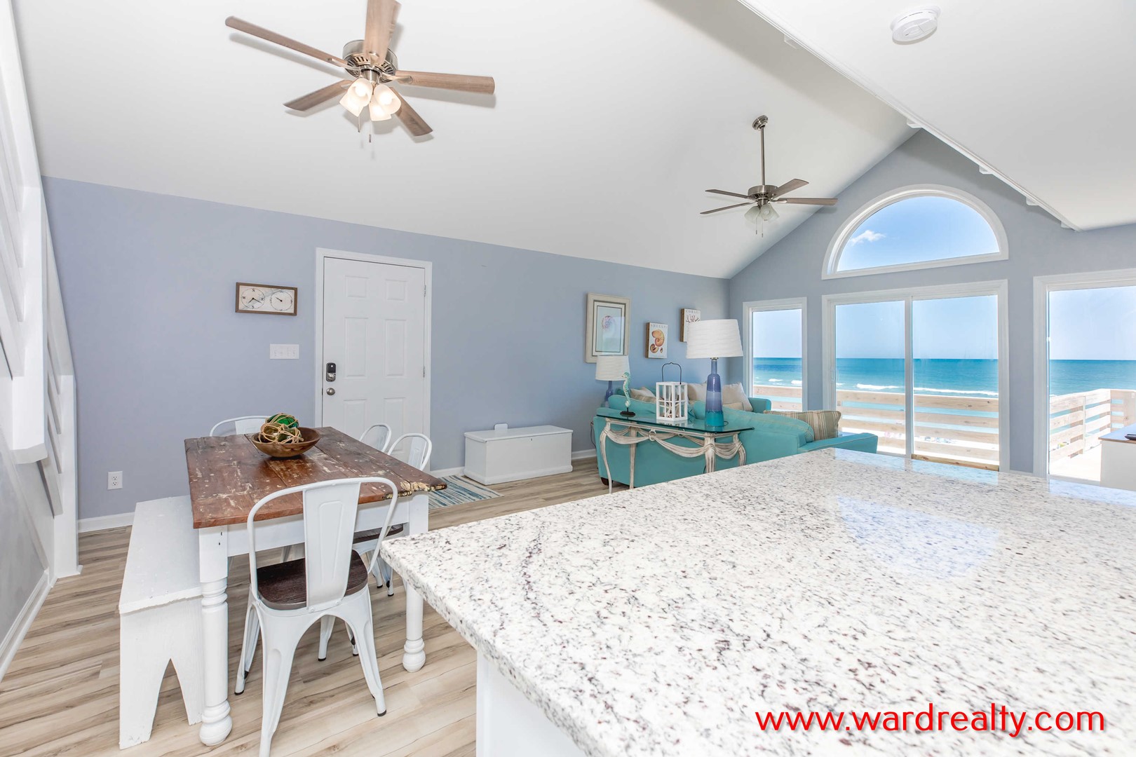 Your cares float away the moment you step inside this beautifully remodeled 3 bedroom, 2 bath oceanfront cottage. Get right up close to the ocean and the beach on the sun deck and take it all in! Drink in the incredible ocean views that the open floor plan provides from the lofty ceiling high windows and the large sliding doors leading onto the oceanfront deck. You’ll be charmed by coastal decor and all new furnishings. The dining table seats 6 and the roomy modern kitchen includes, counter seating, new appliances and granite counters. A cottage this charming does not have to be as rare as Sea Glass!