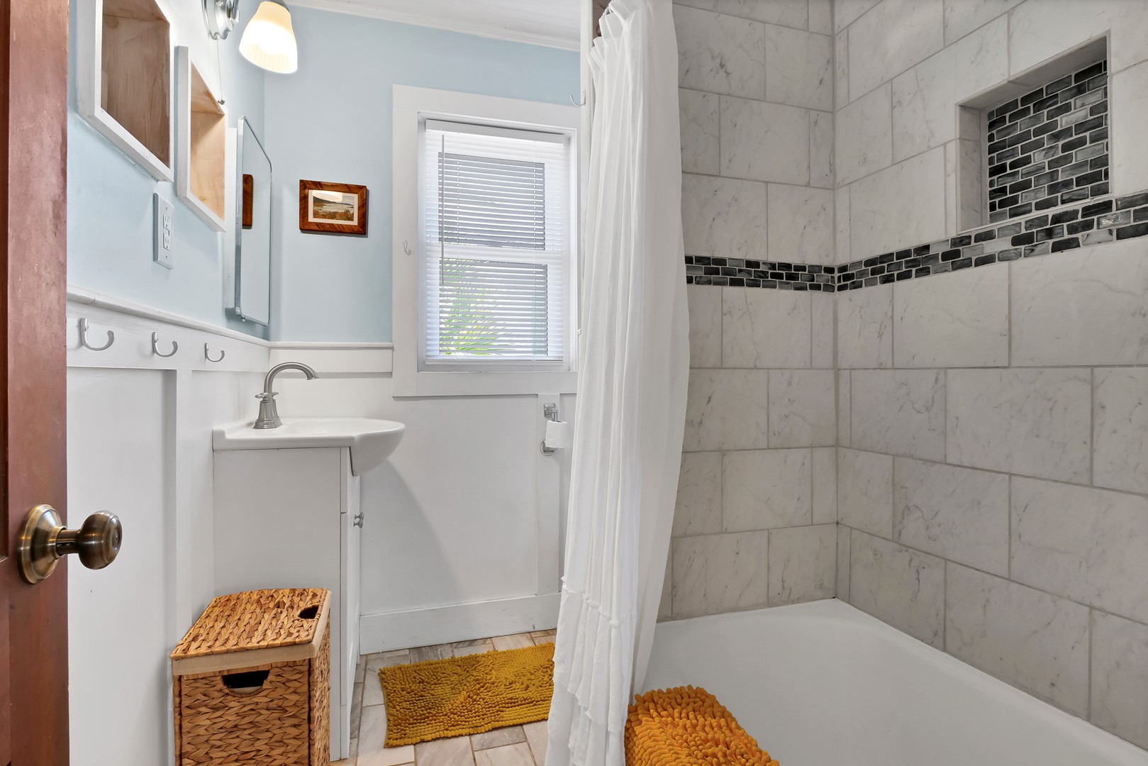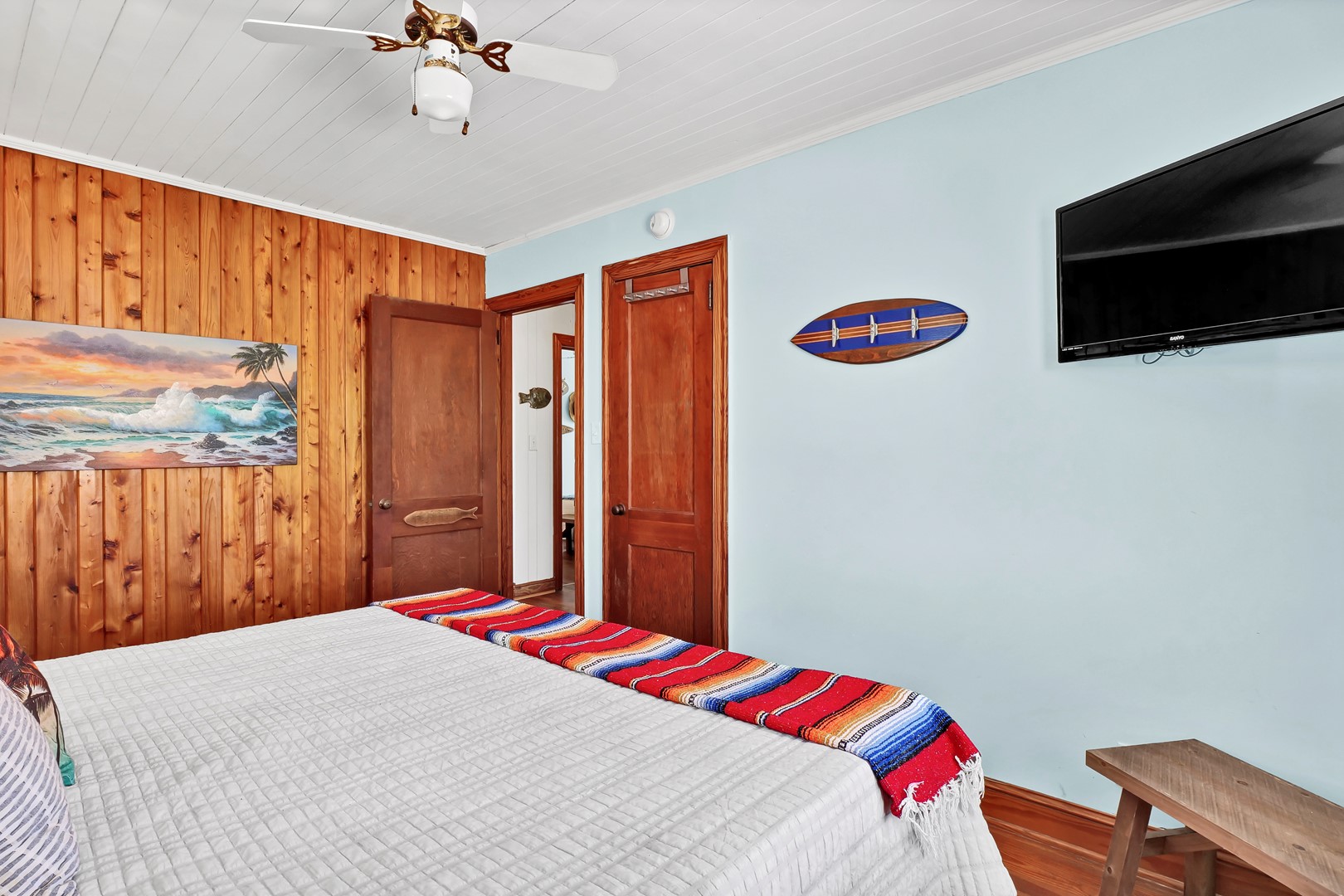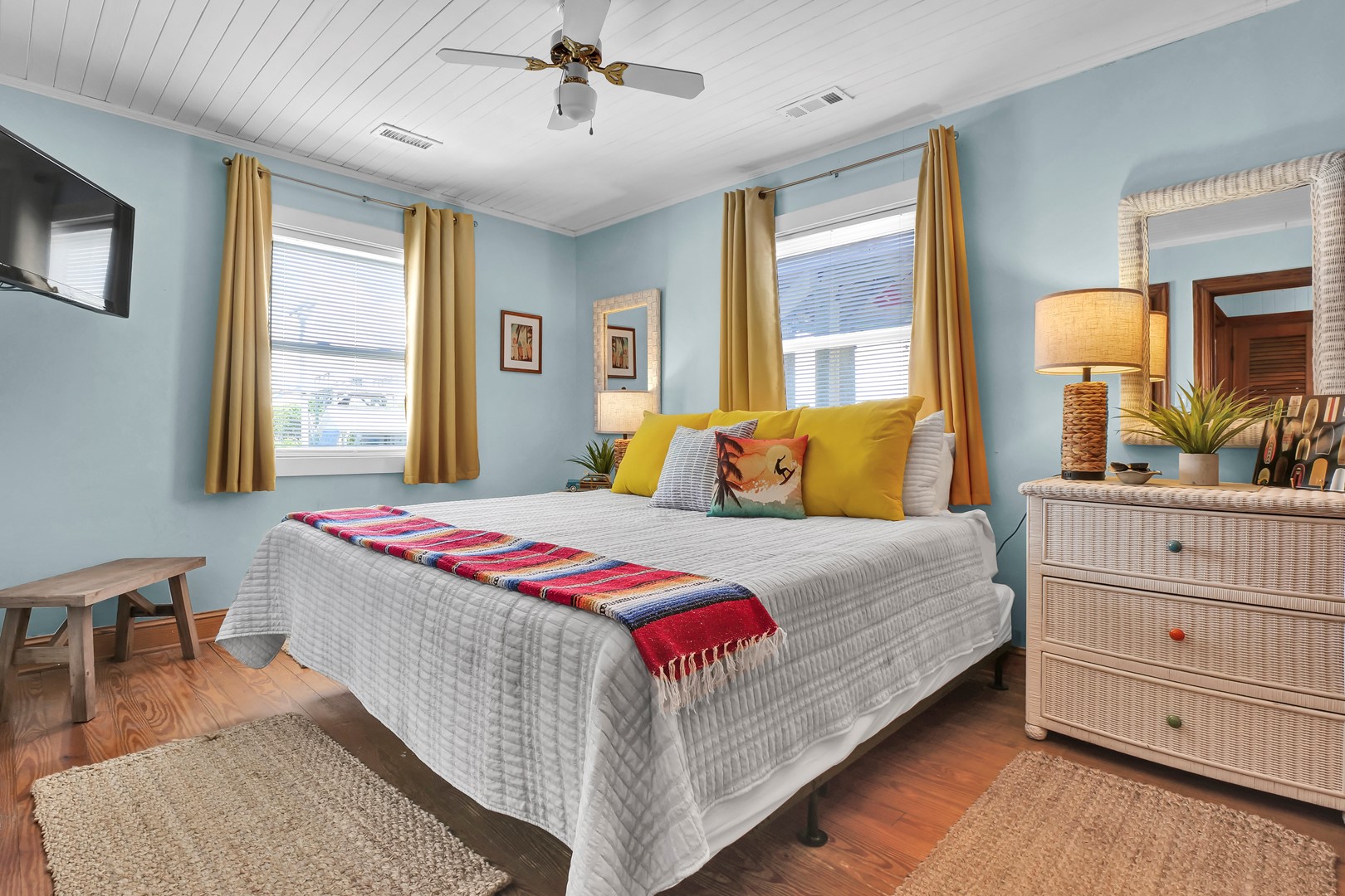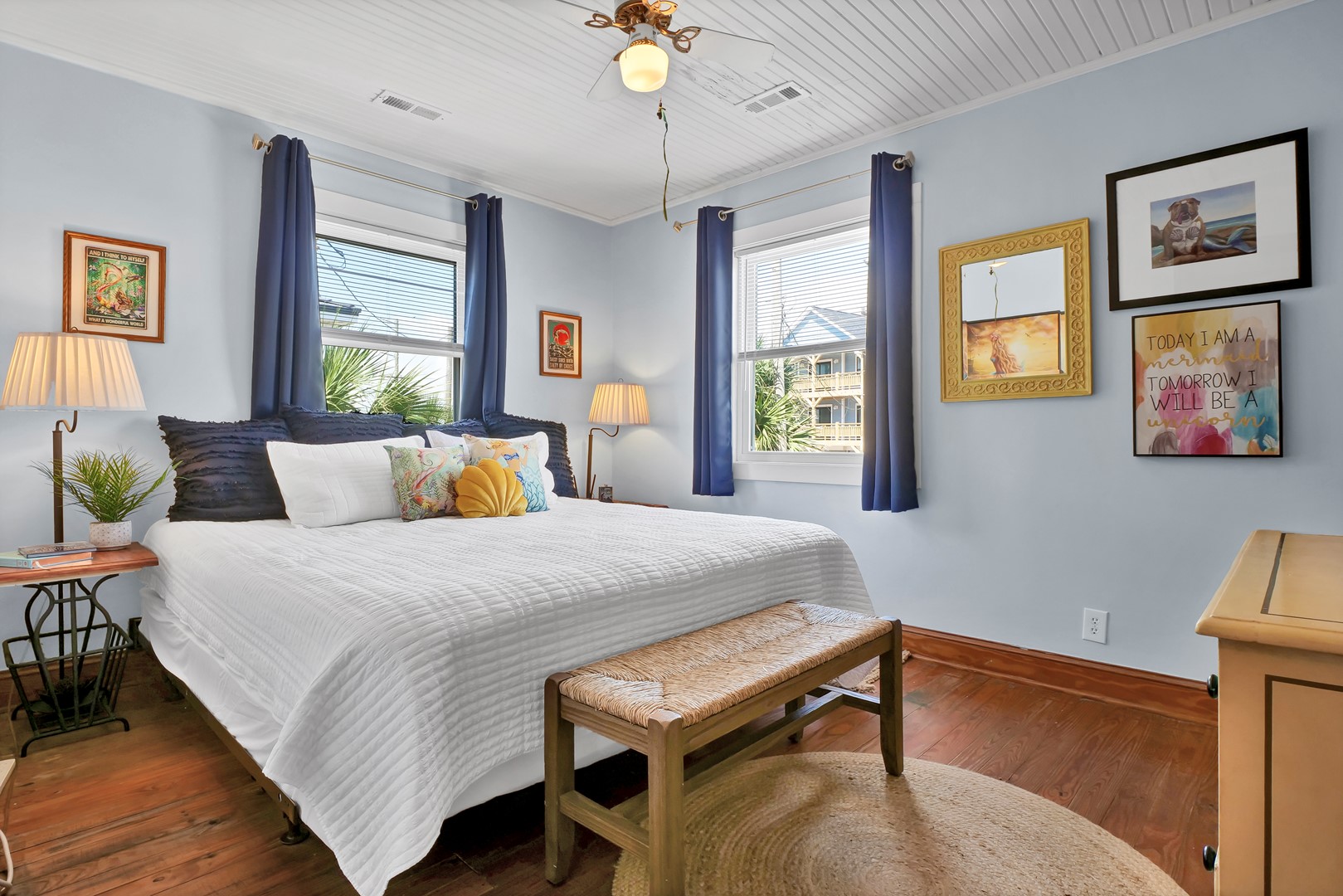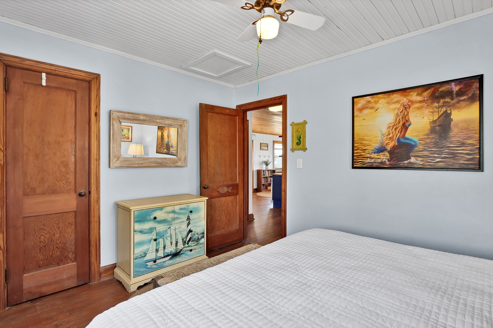 - South Streetside Bedroom: King Bed; shares hall bathroom with tub/shower