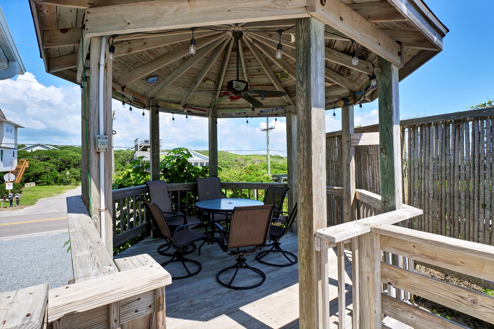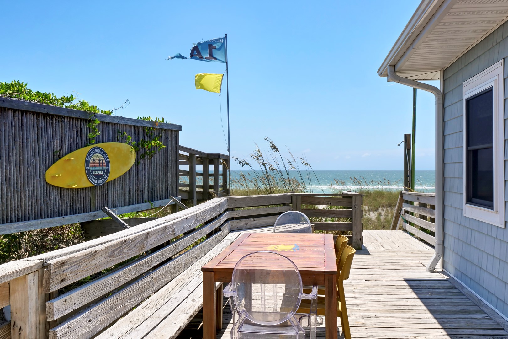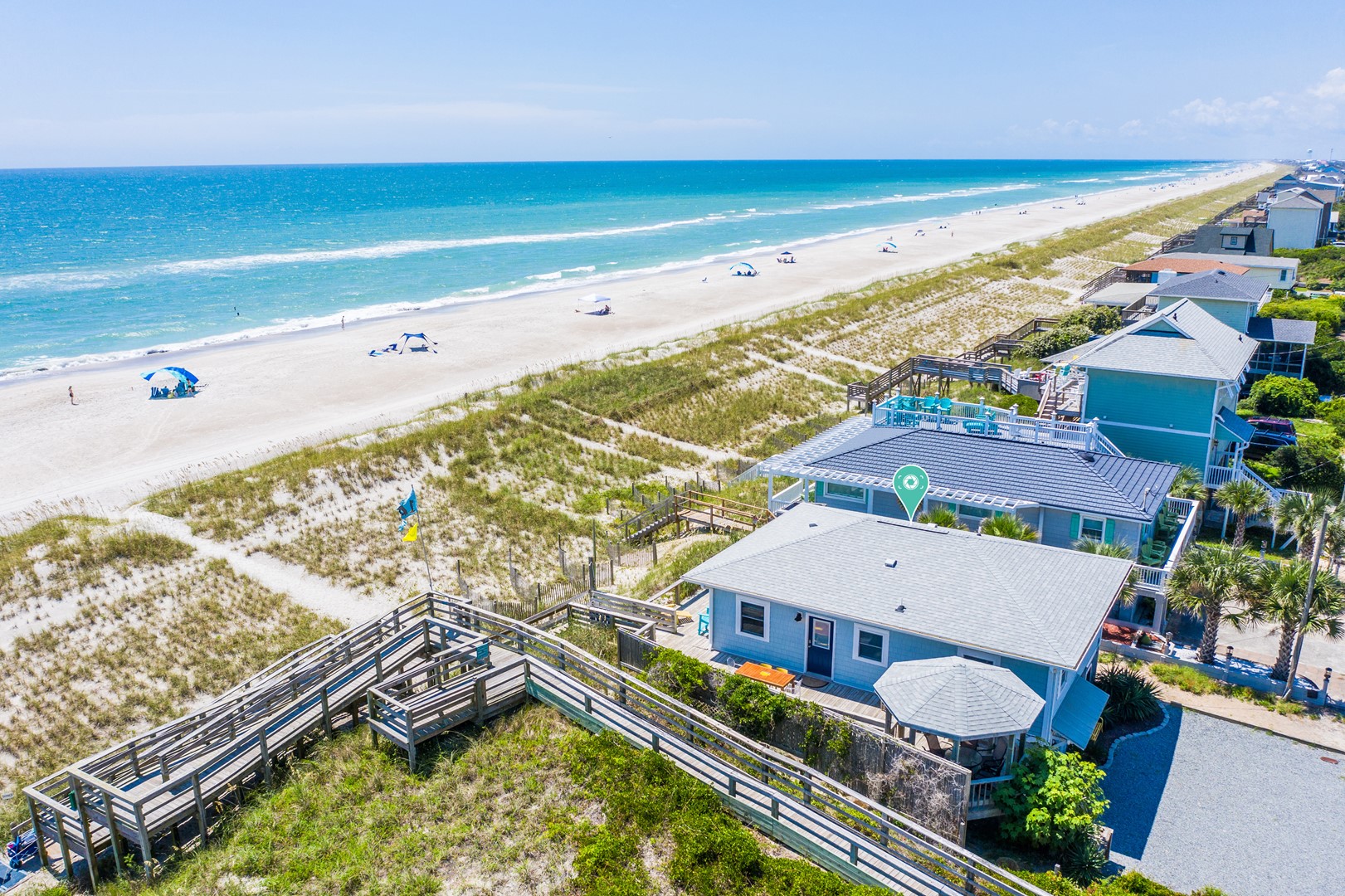 A wide oceanfront sun deck with a north side covered gazebo provides the perfect perch for everyone. With plenty of great deck furniture, you’ll be sure to spend a lot of time relaxing outside and taking it all in. The enclosed outdoor hot/cold shower is located oceanfront and is perfect for washing away the salt and sand at the end of a fun-filled beach day.