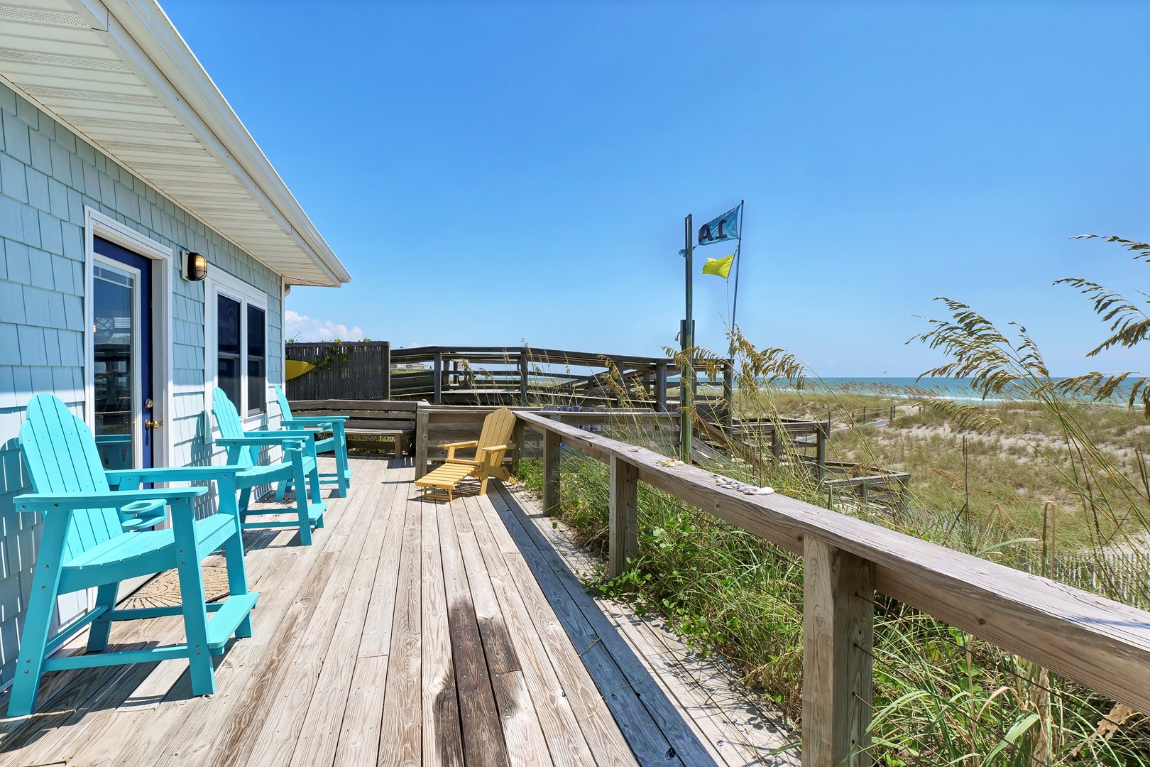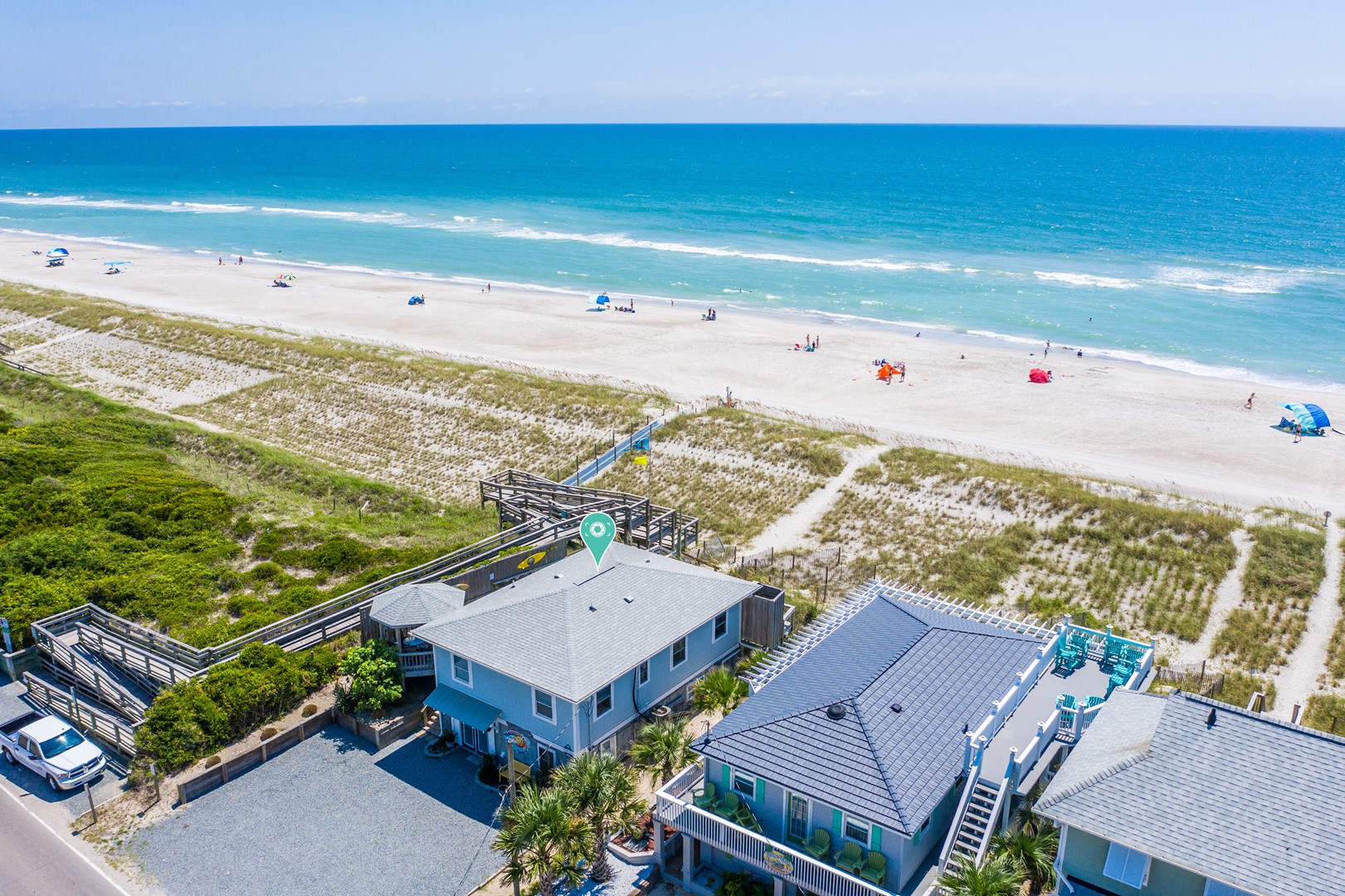 Tucked behind the dune, Seaworthy is sure to tempt you into making many beach memories as your gaze is directed down the path to the Atlantic Ocean. The open living and dining area is located on the main level and showcases an amazing view of the ocean which leads you directly onto the oceanfront sun deck. The updated kitchen provides everything you’ll need during your stay. With multiple dining options, you are sure to have a wonderful time sampling the local cuisine al fresco or in the spacious dining room. But wait, there's more! This home also includes a connected ground floor with an additional living room, two bonus bedrooms and a full bathroom. Double the fun! Double the memories. This amazing home is worthy of being a favorite vacation spot for multiple generations to gather under one roof!