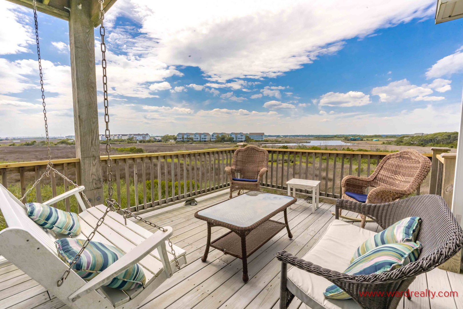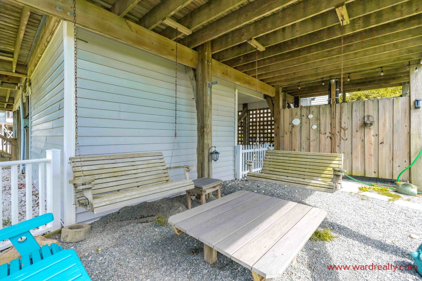 - Covered porch & multiple decks with furniture & swings
