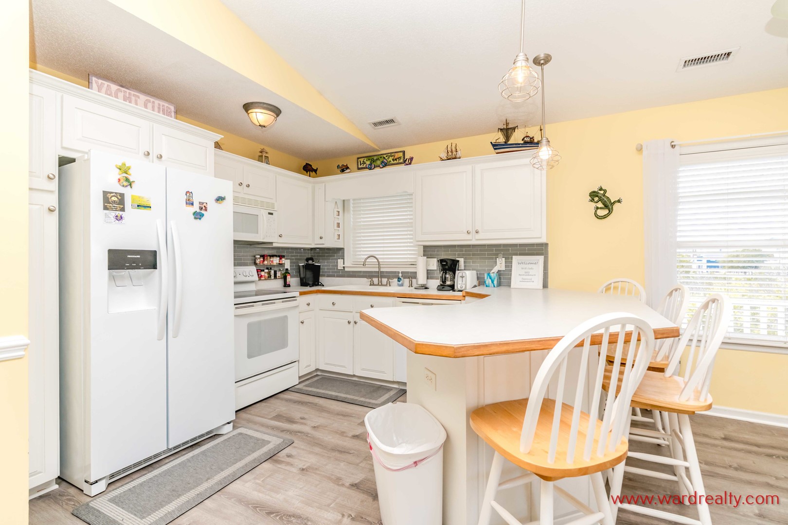This lovely 3 bedroom, 2 bath dog friendly home overlooking the Intracoastal Waterway is a great place to relax any time of year. Located on the North end of Surf City, you’re close to shopping and dining, and right across the street from The Trailer Bar, one of Topsail Island’s most famous entertainment institutions. Ready to hit the sand? There are beach chairs and umbrella for you to use, which Shore Beats the Work of bringing them from home!