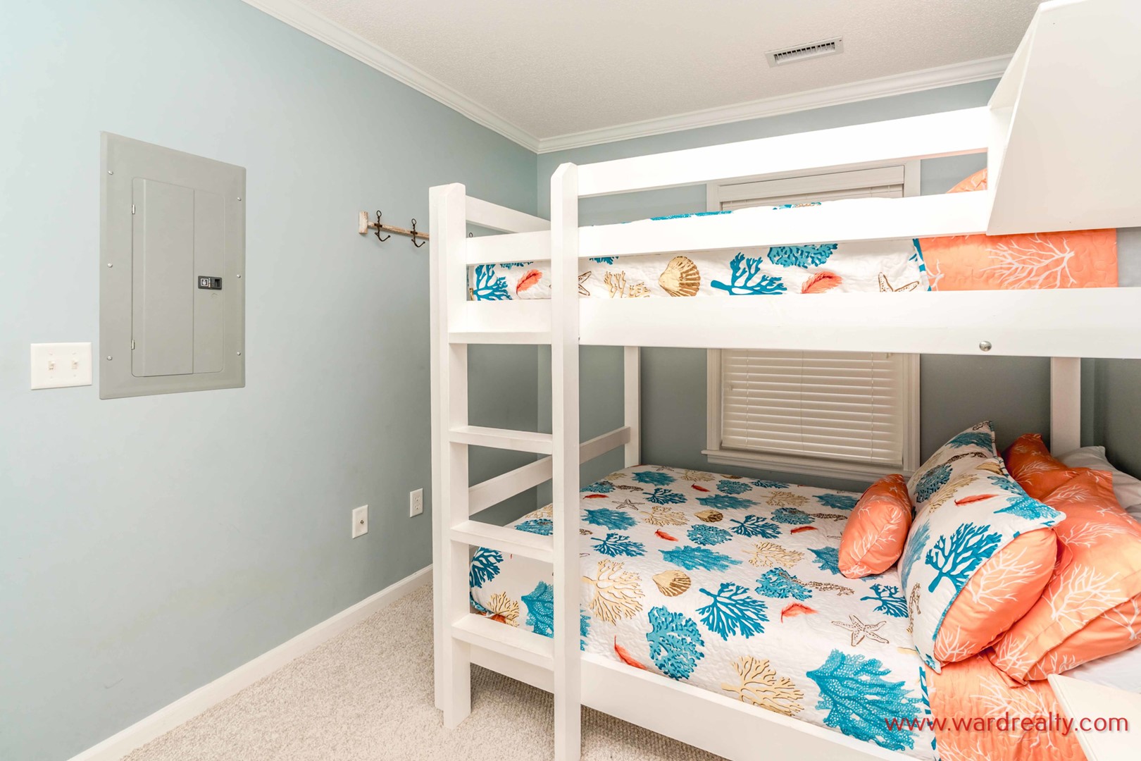 - 1st Floor Back West Bedroom: Double over Double Bunk Bed; full bath with tub/shower adjacent