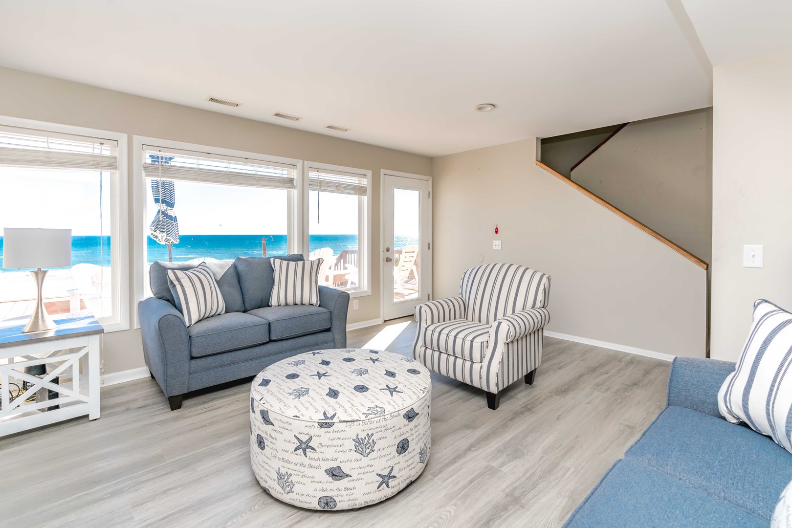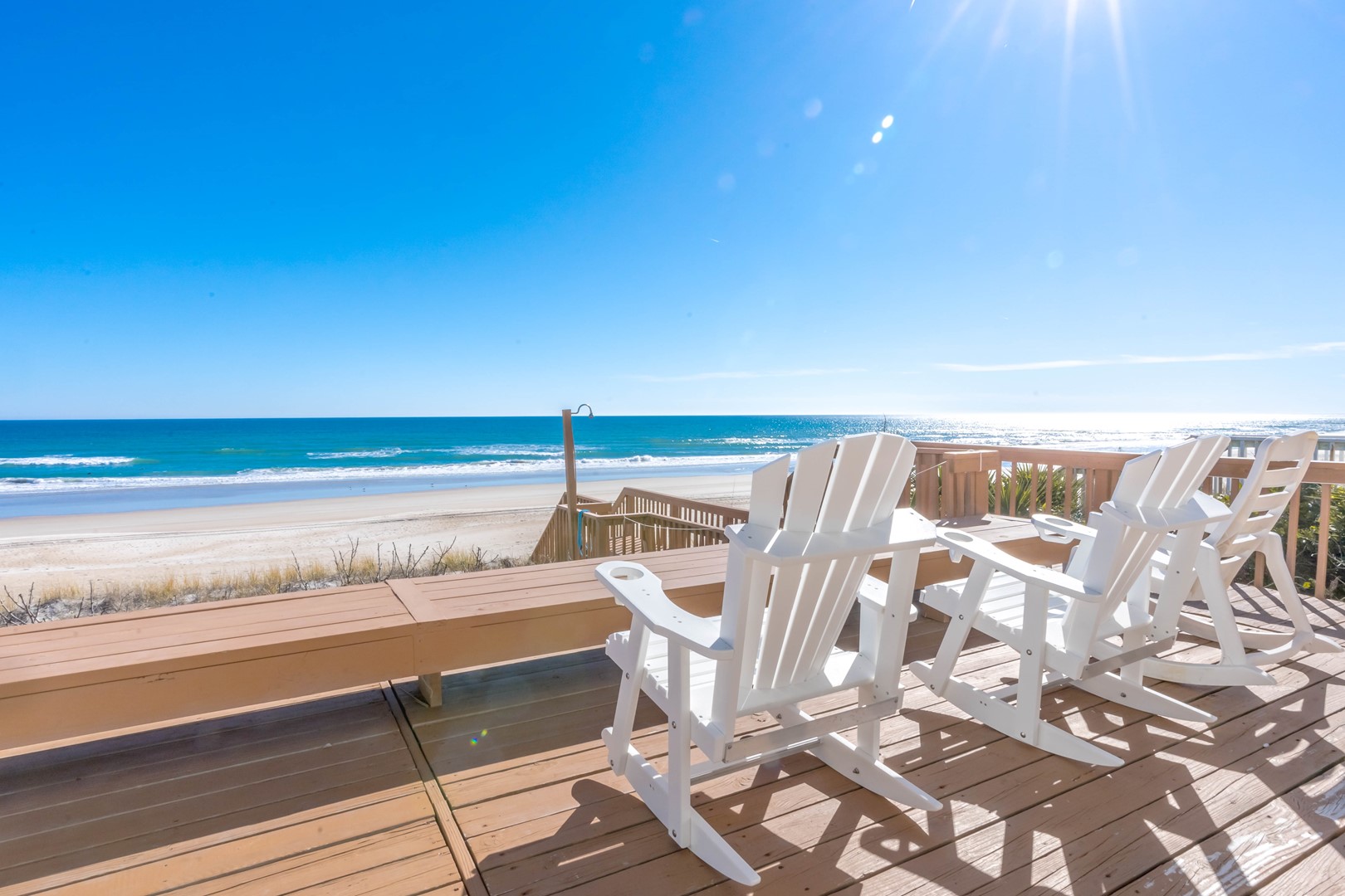 - Large oceanfront sundeck with built-in seating