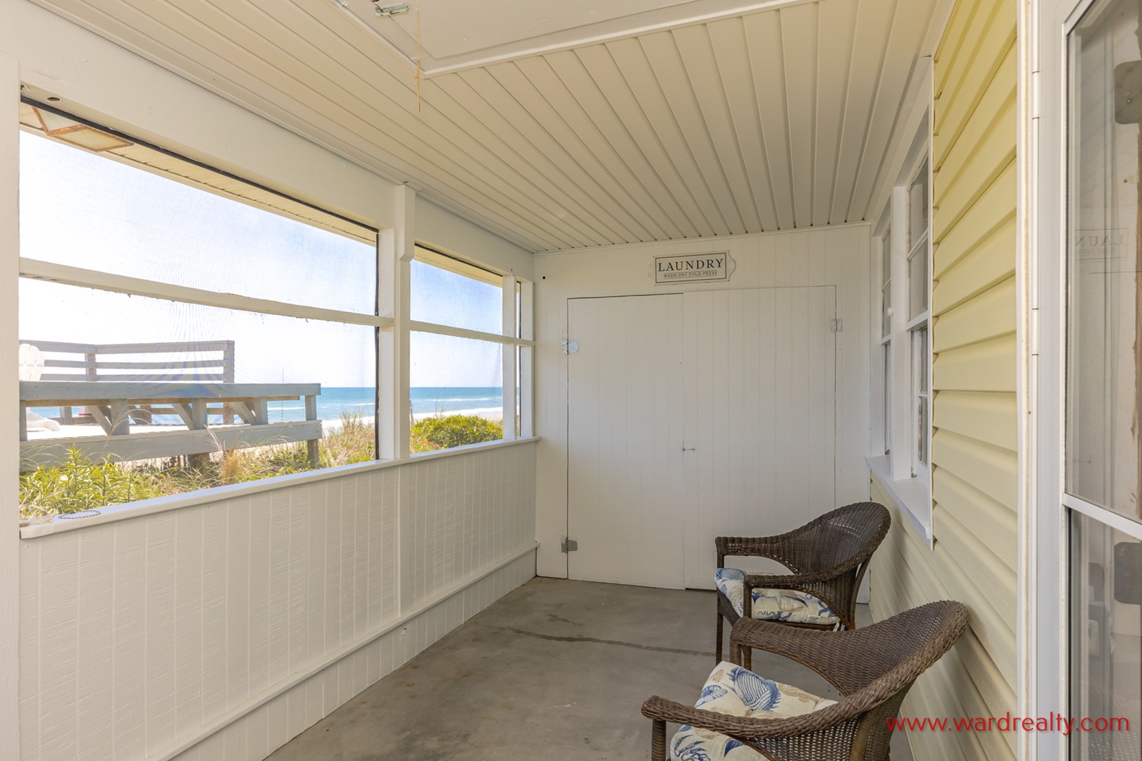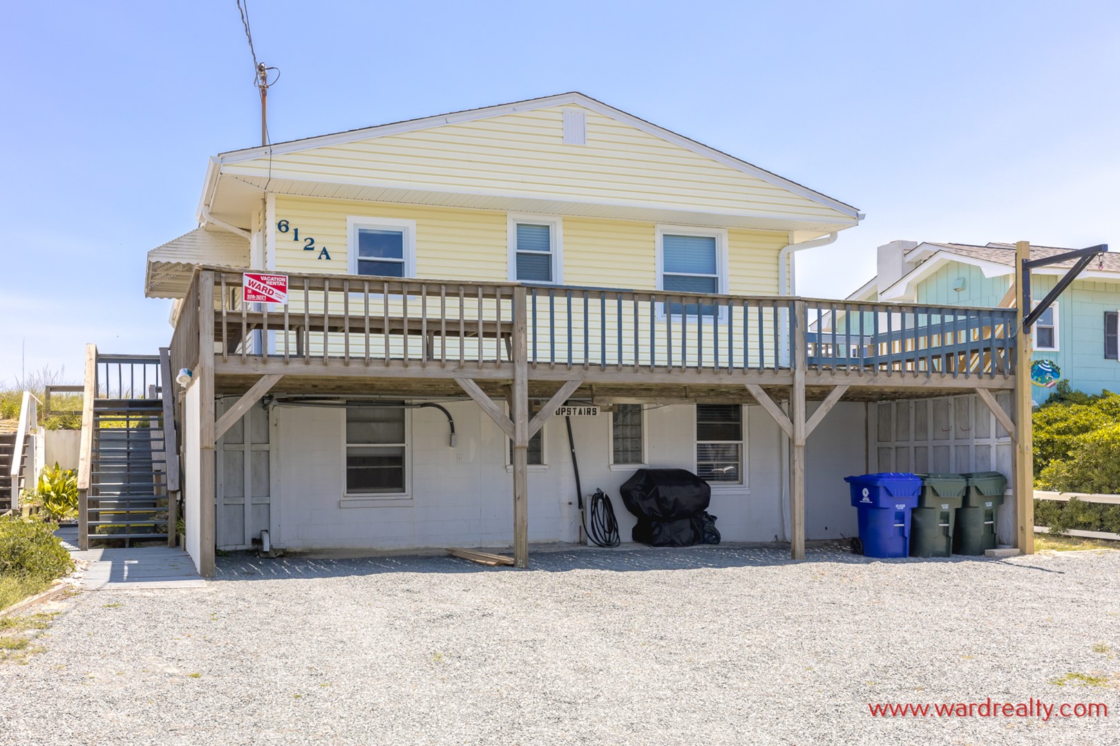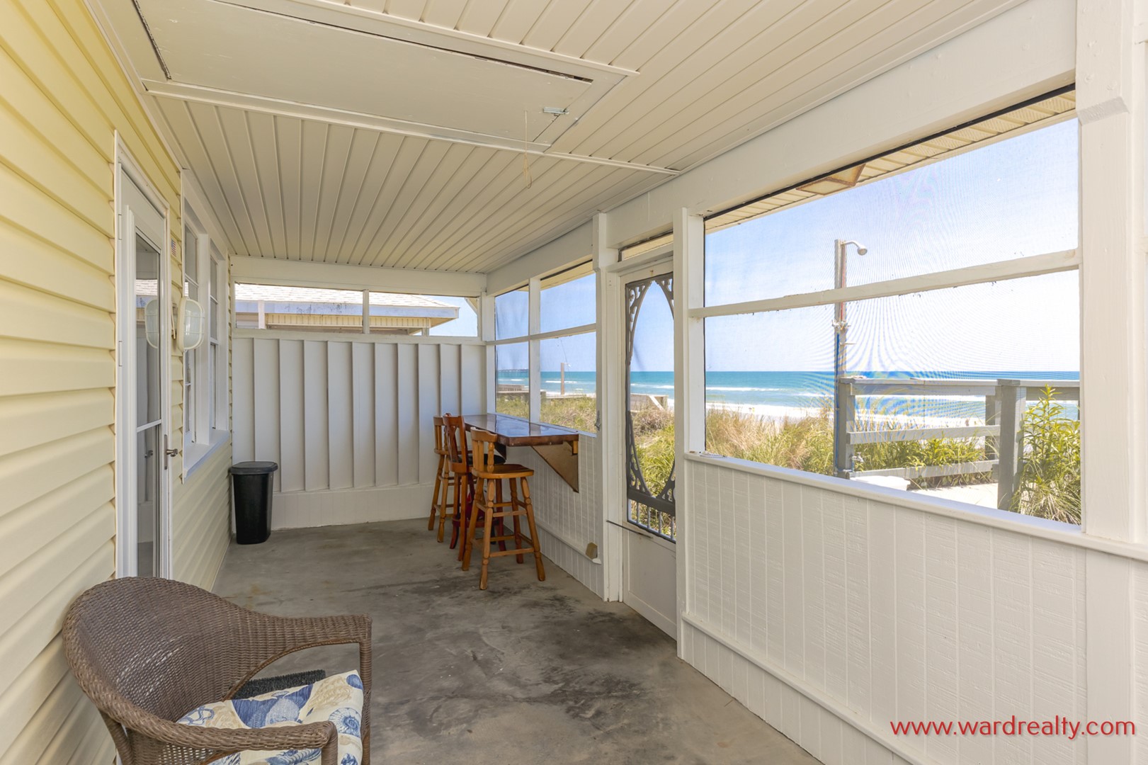 This classic oceanfront beach cottage with 4 bedrooms and a bunkroom is just outside the heart of Surf City. Shoreline offers 2 living spaces and 2 kitchens to make it the perfect getaway for large families (and up to 2 dogs). The top floor is covered in classic NC knotty pine throughout and has a main living room, dining table and oceanfront screened in porch. Enjoy the updated fully stocked kitchen, 2 bedrooms and a remodeled bathroom. Head downstairs via the spiral staircase to a completely remodeled area featuring 2 king bedrooms, a bunk room with 4 built in twin XL berths, living area, a second full kitchen, 2 bathrooms and another screen-in side porch. One lower side has a double door with locks to create a private full apartment, if you choose to do so.