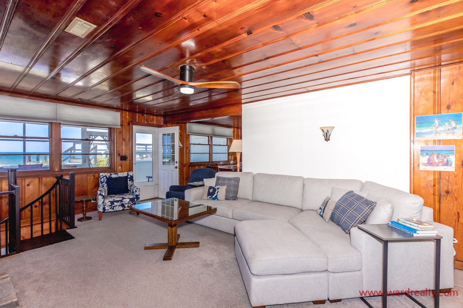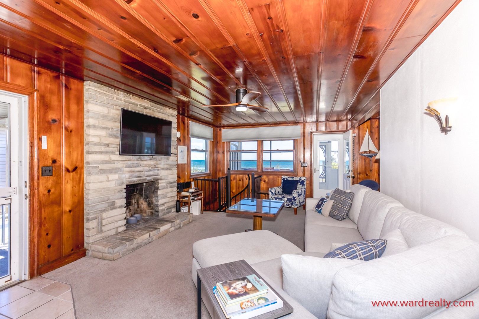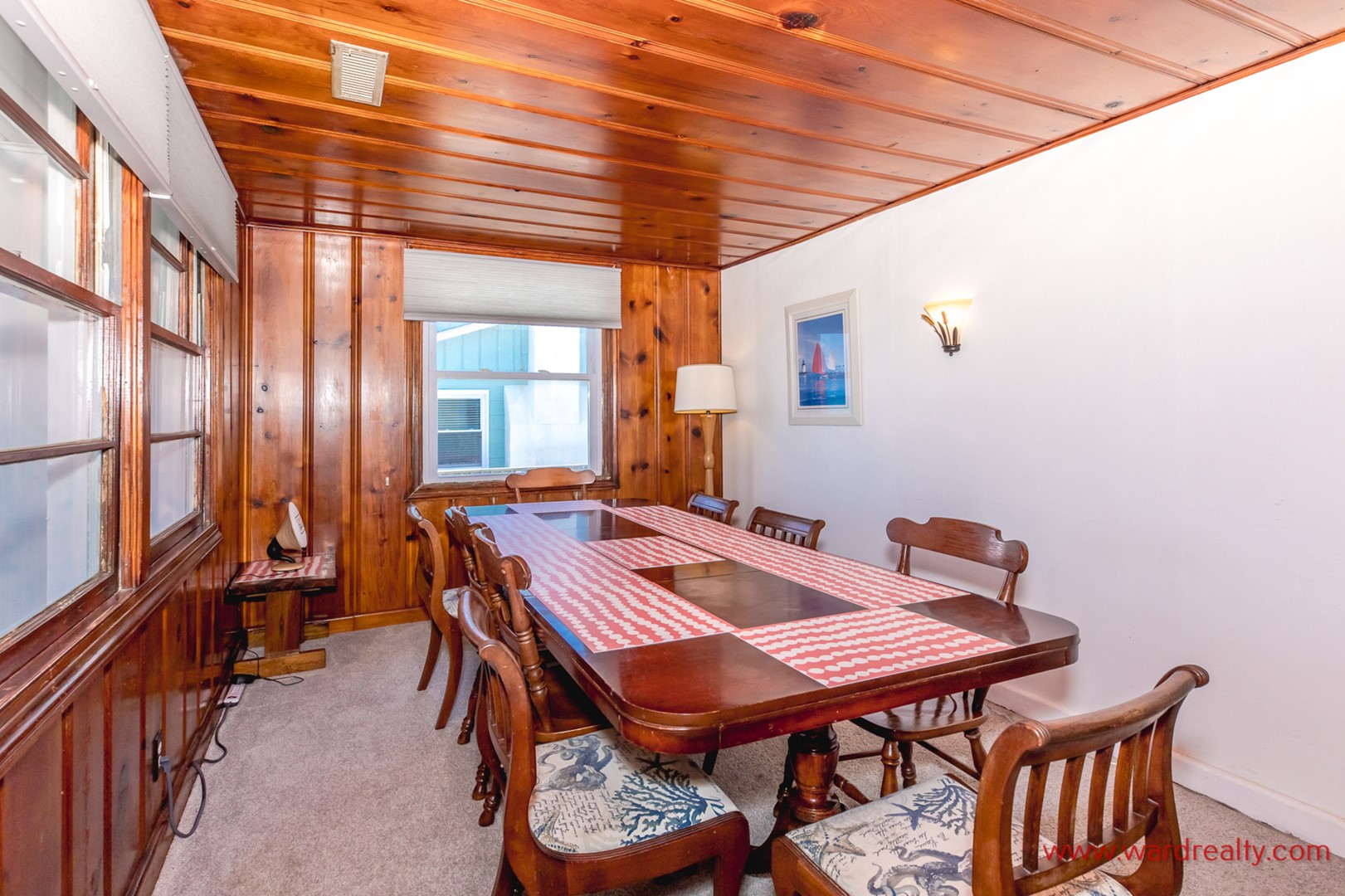 This classic oceanfront beach cottage with 4 bedrooms and a bunkroom is just outside the heart of Surf City. Shoreline offers 2 living spaces and 2 kitchens to make it the perfect getaway for large families (and up to 2 dogs). The top floor is covered in classic NC knotty pine throughout and has a main living room, dining table and oceanfront screened in porch. Enjoy the updated fully stocked kitchen, 2 bedrooms and a remodeled bathroom. Head downstairs via the spiral staircase to a completely remodeled area featuring 2 king bedrooms, a bunk room with 4 built in twin XL berths, living area, a second full kitchen, 2 bathrooms and another screen-in side porch. One lower side has a double door with locks to create a private full apartment, if you choose to do so.