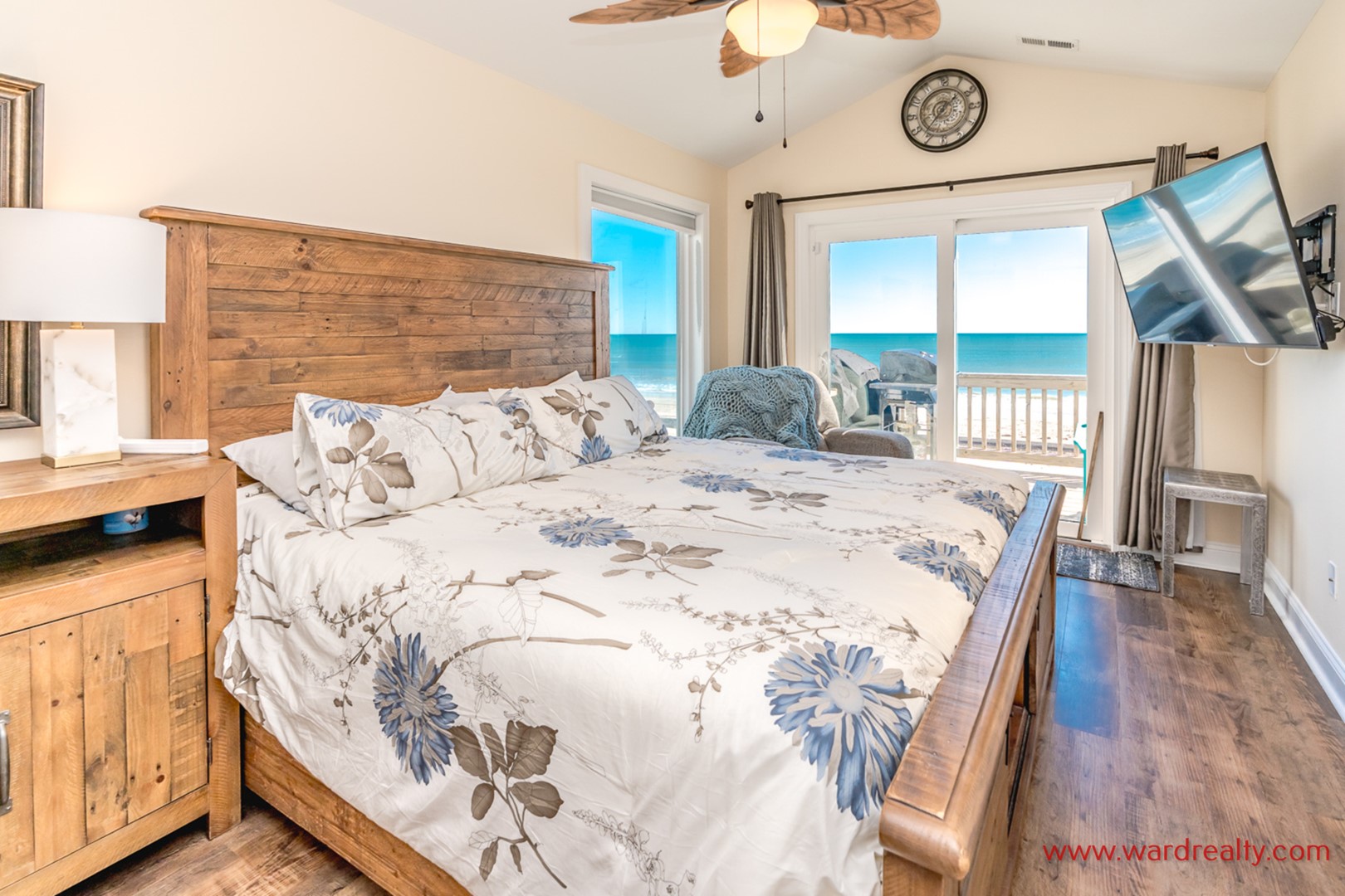 - North Oceanfront Master Bedroom: King Bed with private full bath and oceanfront deck access - 55" flat screen TV