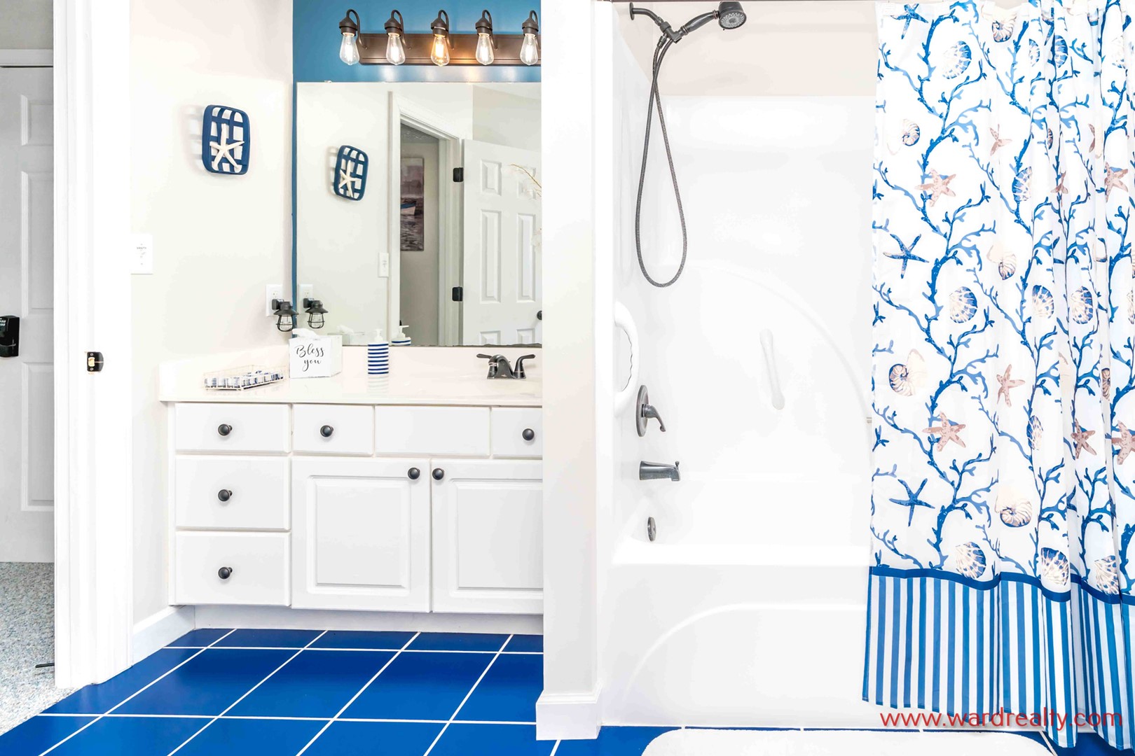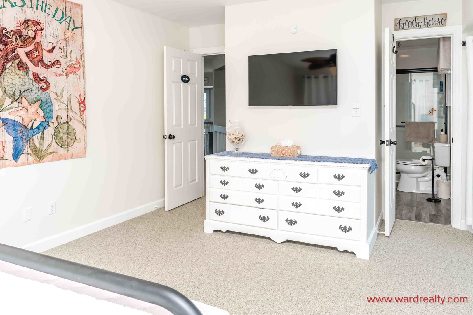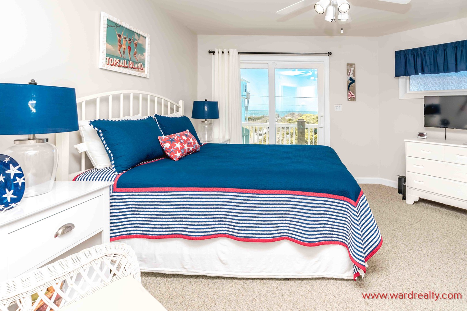 - Queen Bedroom: First Floor; TV; jack and Jill full bath (shower) and access to ocean view covered wraparound deck