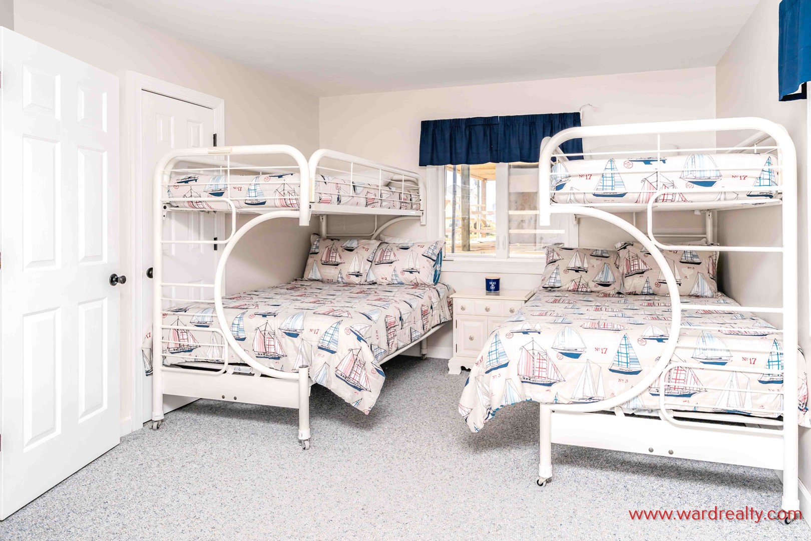 - 2 Twin over Double Bunks Bedroom: First Floor; TV; jack and Jill full bath (shower) and an Intracoastal Waterway view
