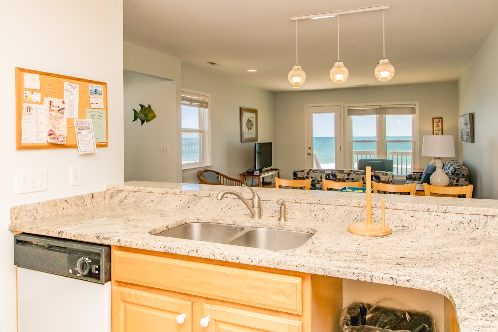 This home features the popular reverse floor plan. From the top floor sun deck, enter in to the comfortable living room. Your family will love the spacious dining table - a special place to enjoy those favorite seafood dinners. The kitchen is fully equipped and you'll have everything you need.