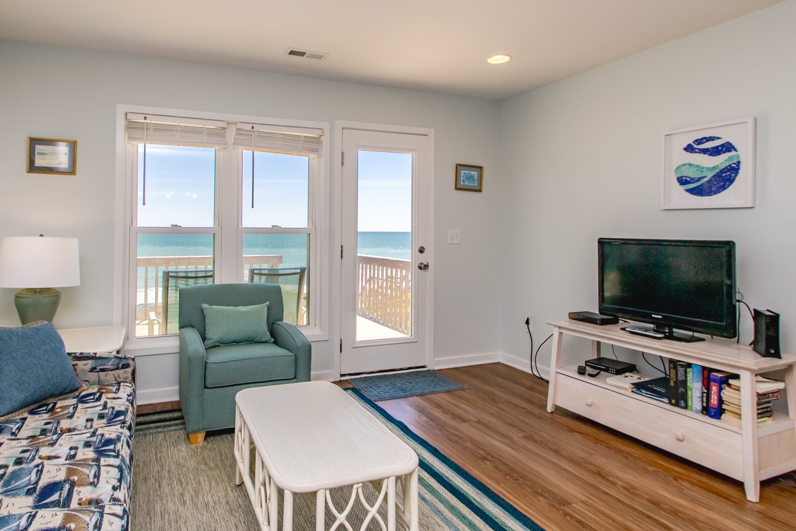- Oceanfront Master Bedroom - Queen Bed; private bathroom with tub/shower