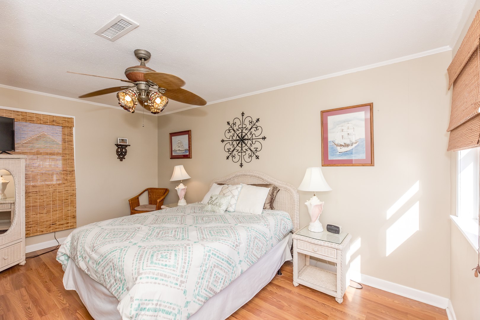 - South Street-Side Bedroom: King Bed; full bathroom with tub/shower adjacent
