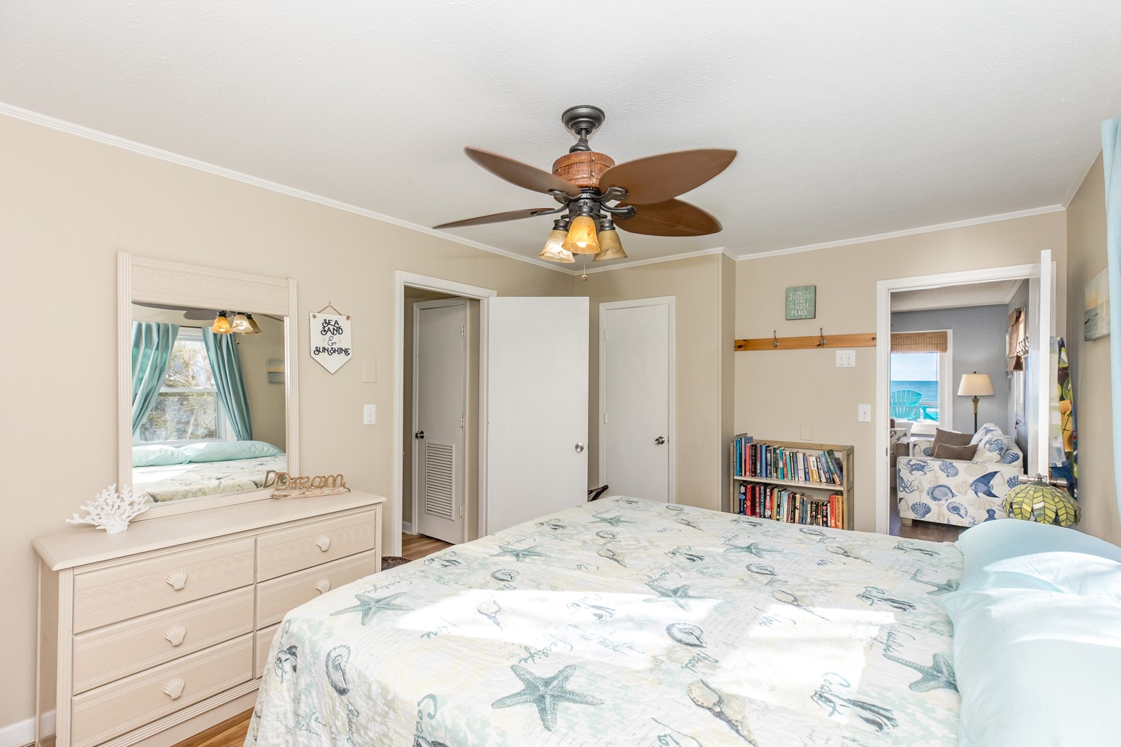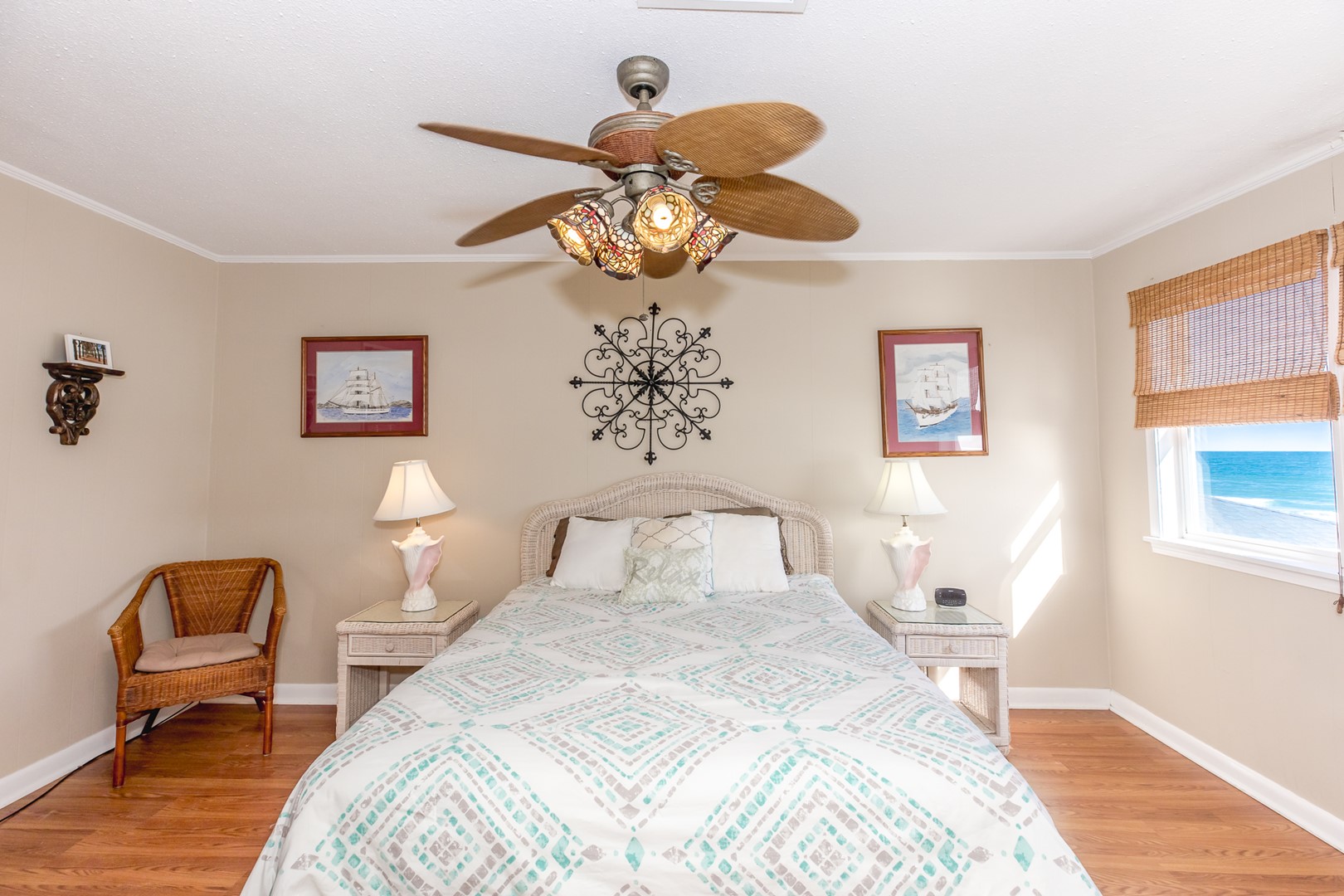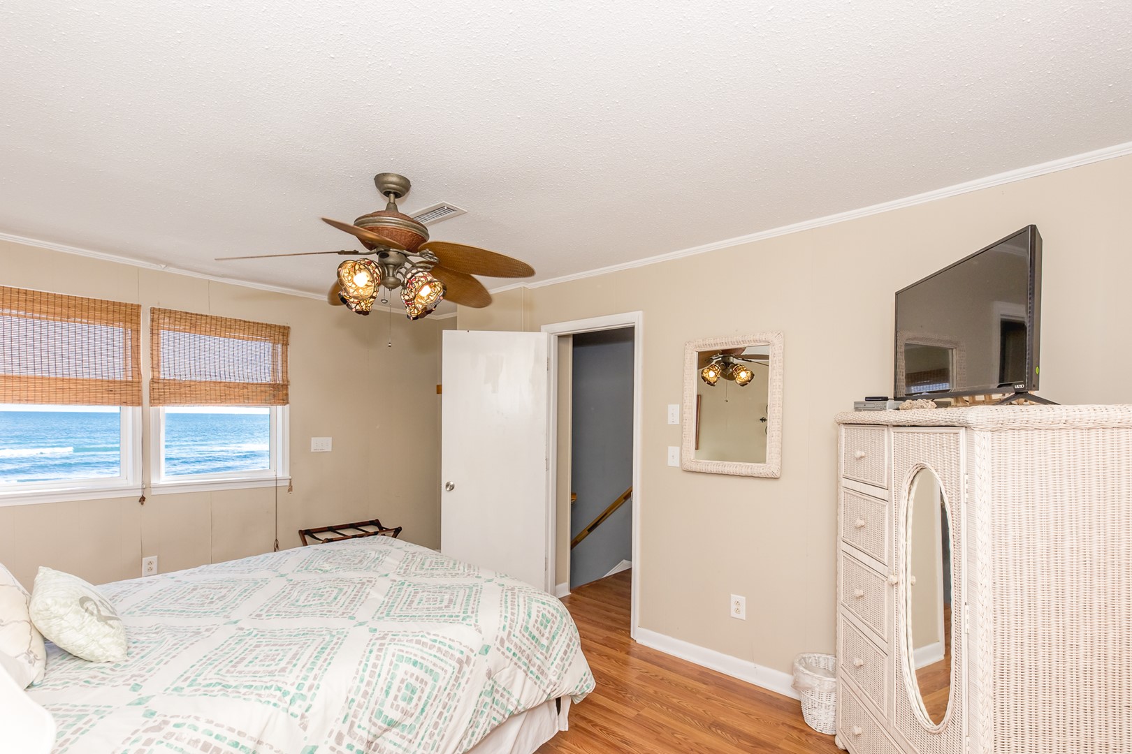 - North Oceanfront Bedroom: Queen Bed; full bathroom with tub/shower adjacent