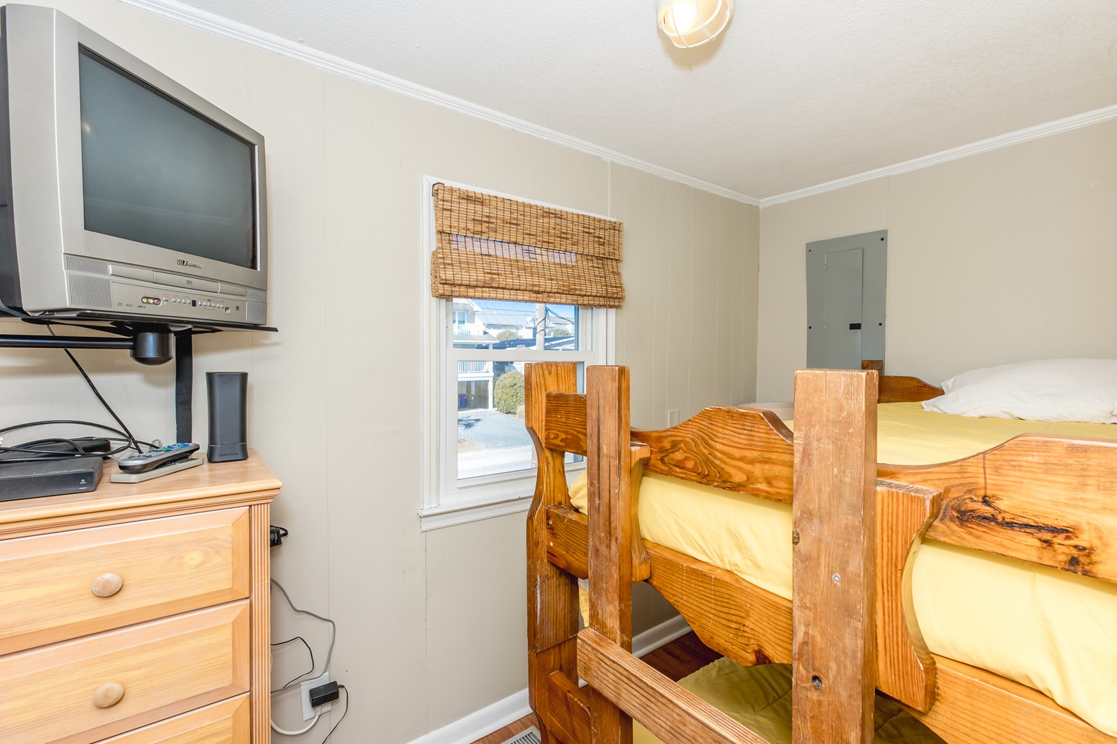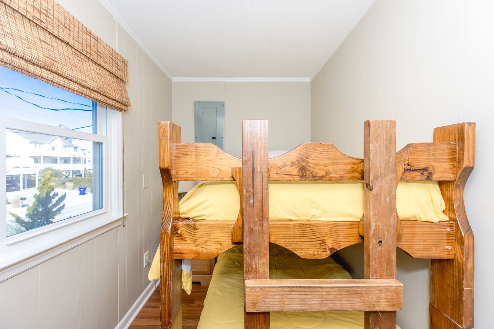- North Street-Side Bedroom: Bunk Bed; full bathroom with tub/shower adjacent; no closet